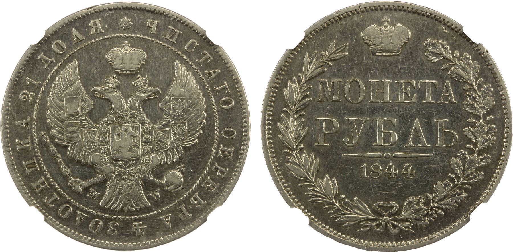 RUSSIA: Nicholas I, 1825-1855, AR rouble, 1844, NGC XF details