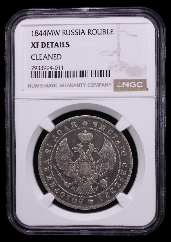 RUSSIA: Nicholas I, 1825-1855, AR rouble, 1844, Cr-168.2, Bitkin-418, Warsaw mint, once cleaned, NGC graded XF details.