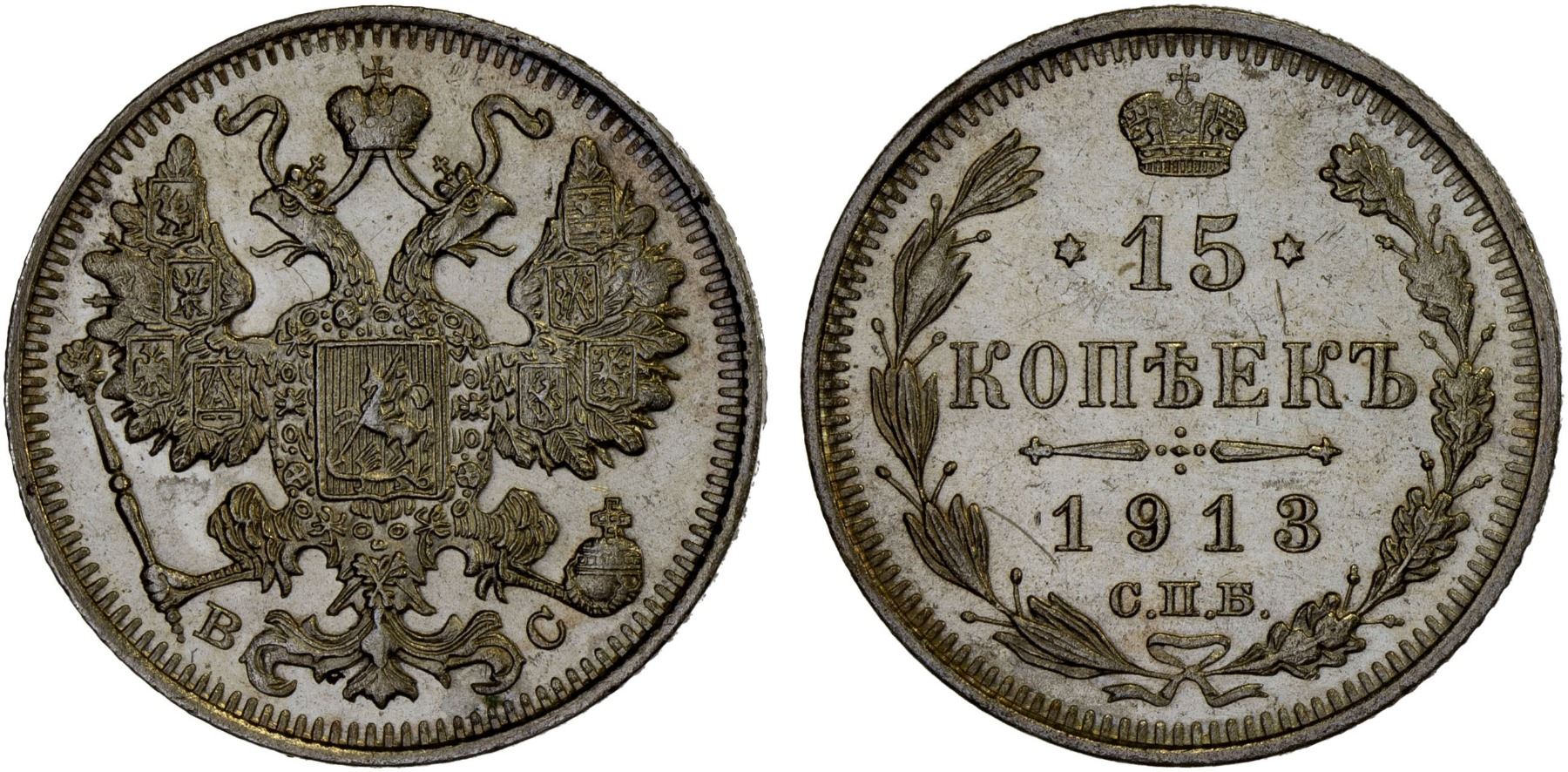 RUSSIA: Nicholas II, 1894-1917, AR 15 kopeks, 1913, Unc