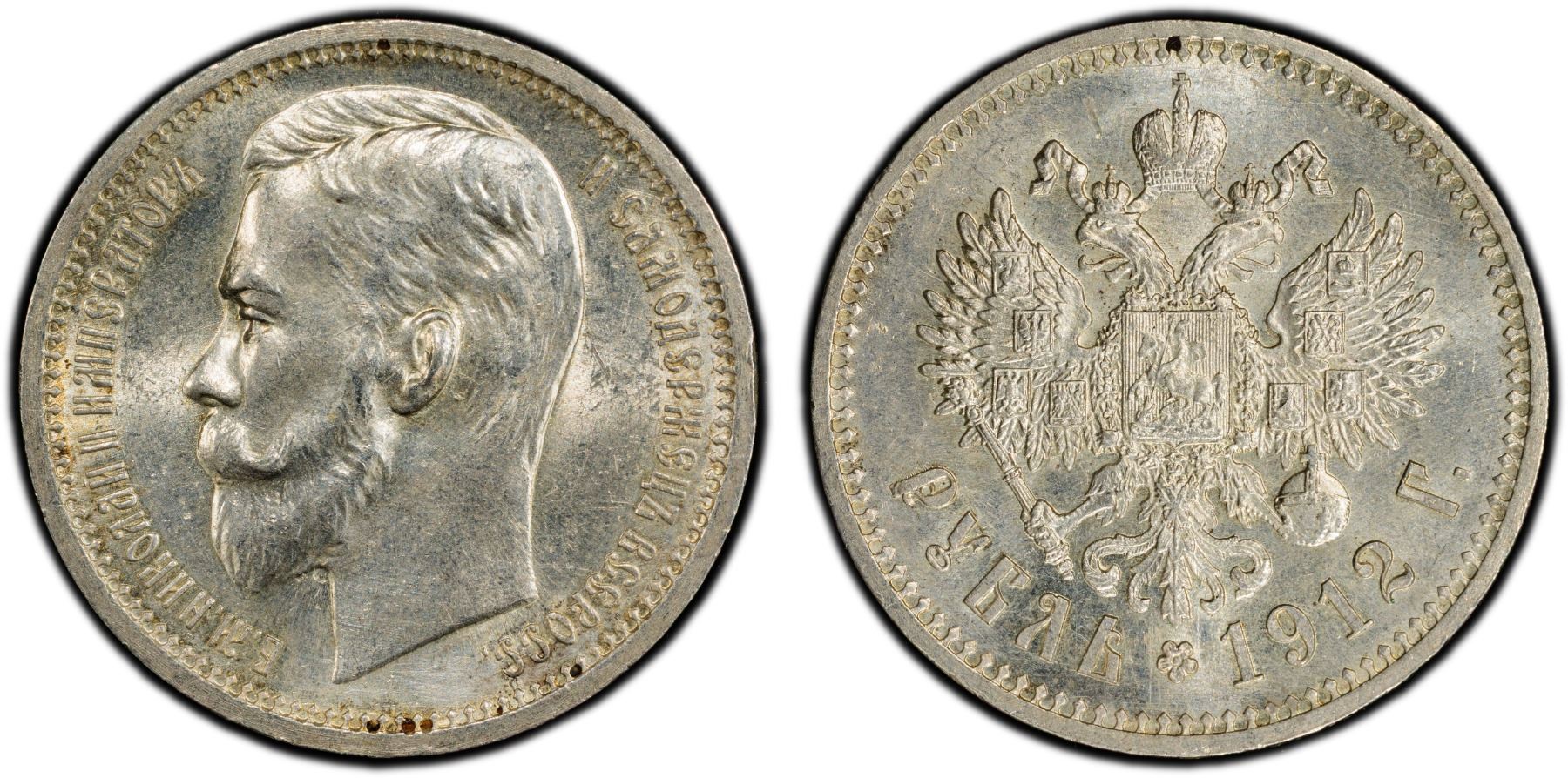 RUSSIA: Nicholas II, 1894-1917, AR rouble, 1912, PCGS Unc details