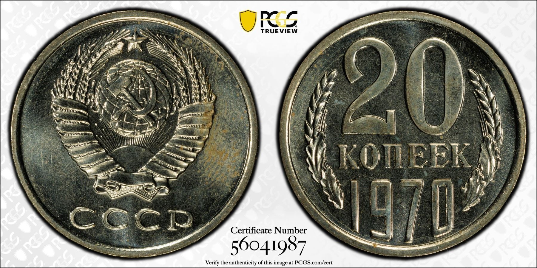 U.S.S.R.: 20 kopeks, 1970, Y-132, Fedorin-120, very lustrous, key date, PCGS graded ProofLike Unc 64, ex Almer H. Orr III Collection.