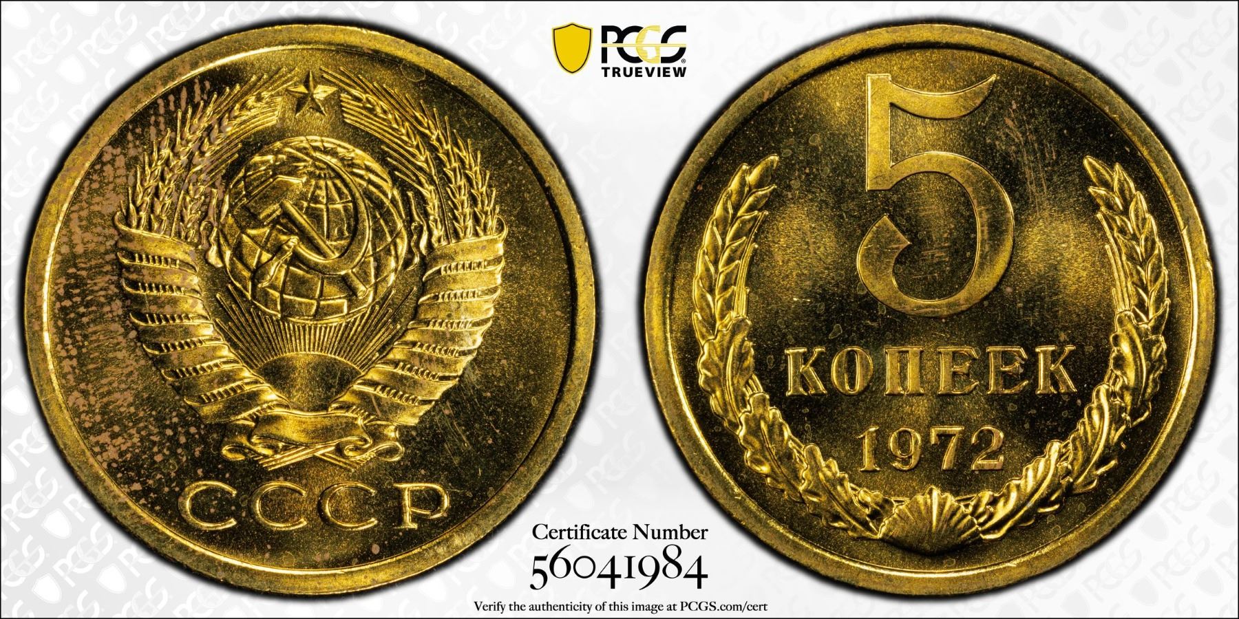 U.S.S.R.: 5 kopeks, 1972, Y-129a, Fedorin-118, very lustrous, better date, PCGS graded ProofLike Unc 64, ex Almer H. Orr III Collection.
