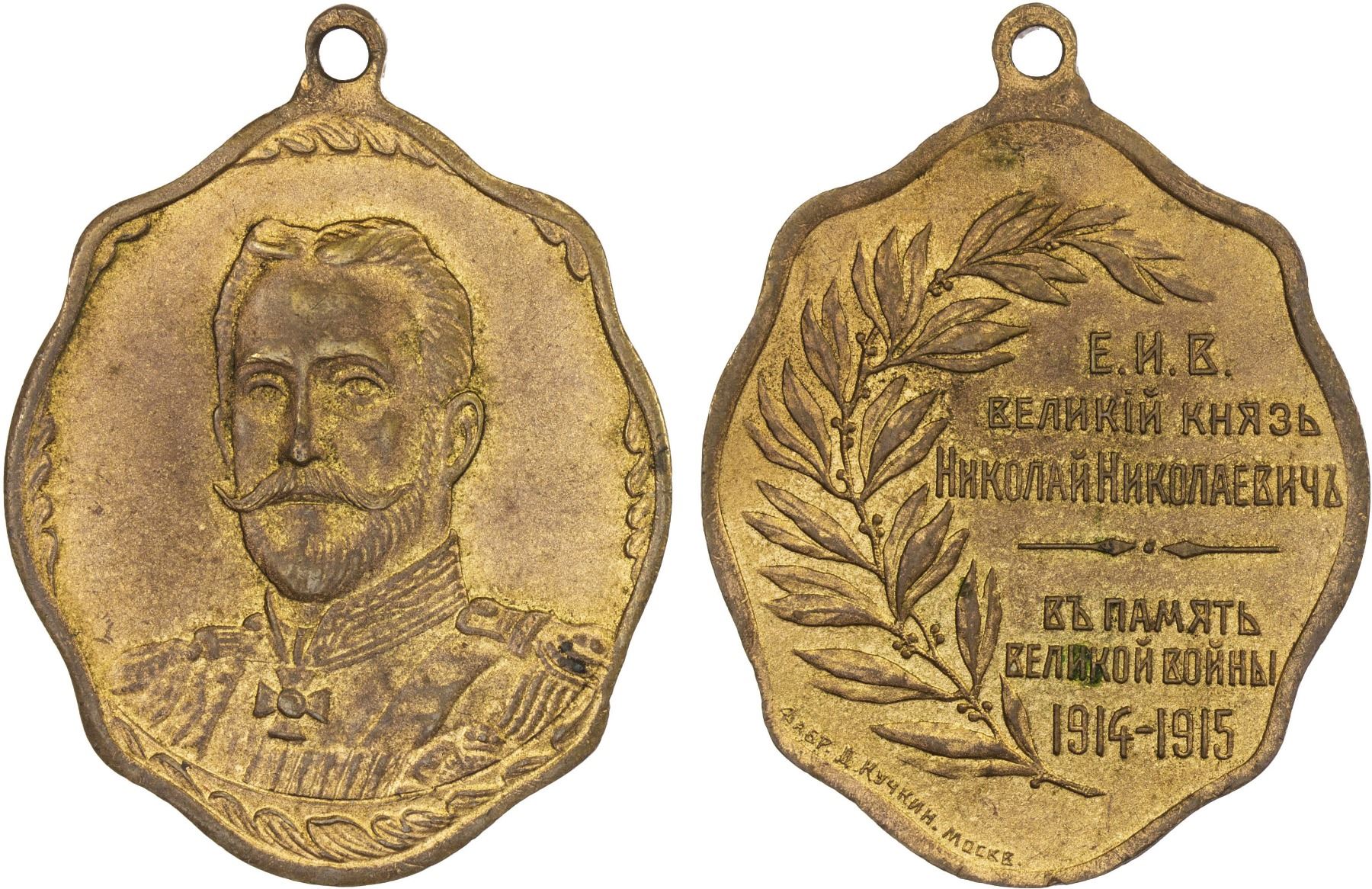 RUSSIA: gilt AE jeton, 1915, 36 x 27mm, patriotic token from WWI, "In memory of the great war" by D.L. Kuchkina, AU.