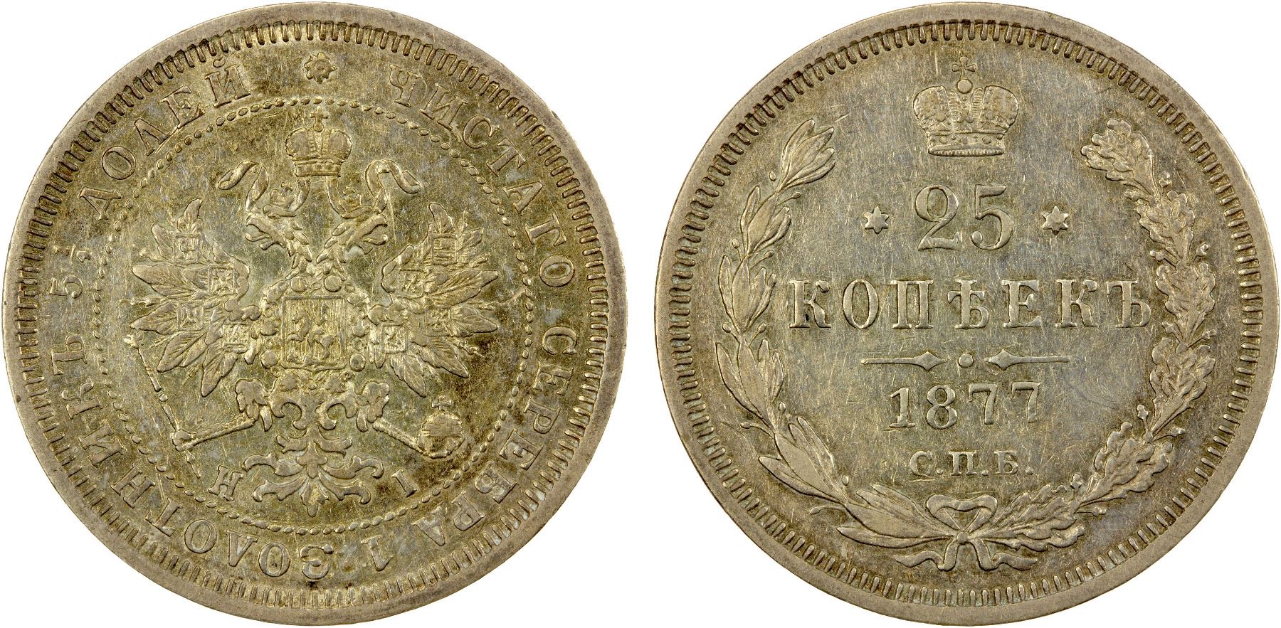 RUSSIAN EMPIRE: Alexander II, 1855-1881, AR 25 kopeks, 1877, EF