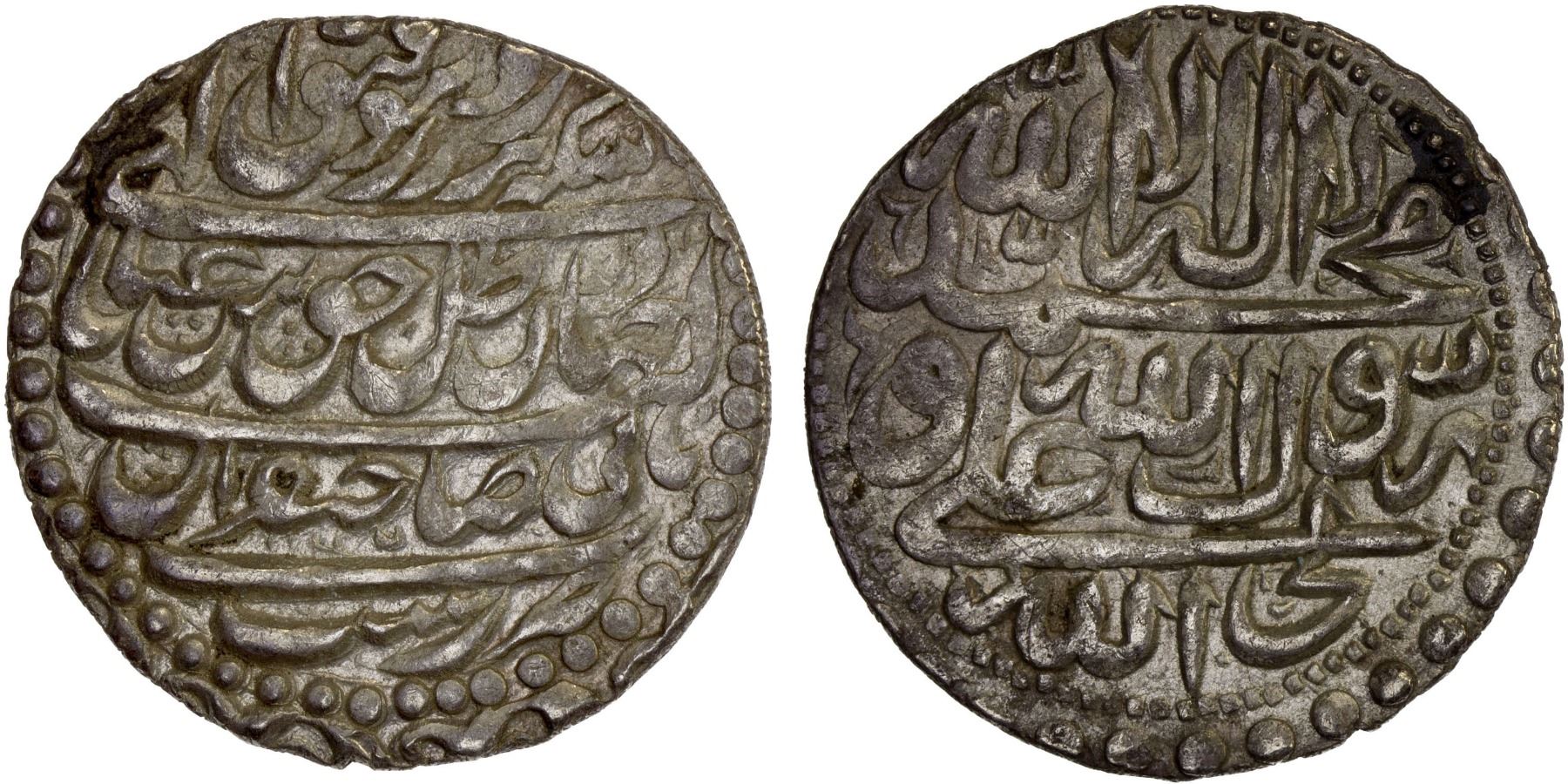 SAFAVID: 'Abbas III, 1732-1735, AR abbasi (5.32g), Rasht, AH1147, A-2694, rare mint, with date added in tiny numerals beneath the word sahebqiran, XF, ex Salvatore J. Falcone Collection.