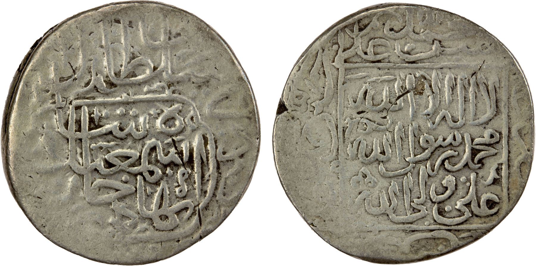 SAFAVID: Isma'il I, 1501-1524, AR 2 shahi (17.73g), NM, ND, A-2575, tall lozenge // square, about 10% flat strike, VF, R.