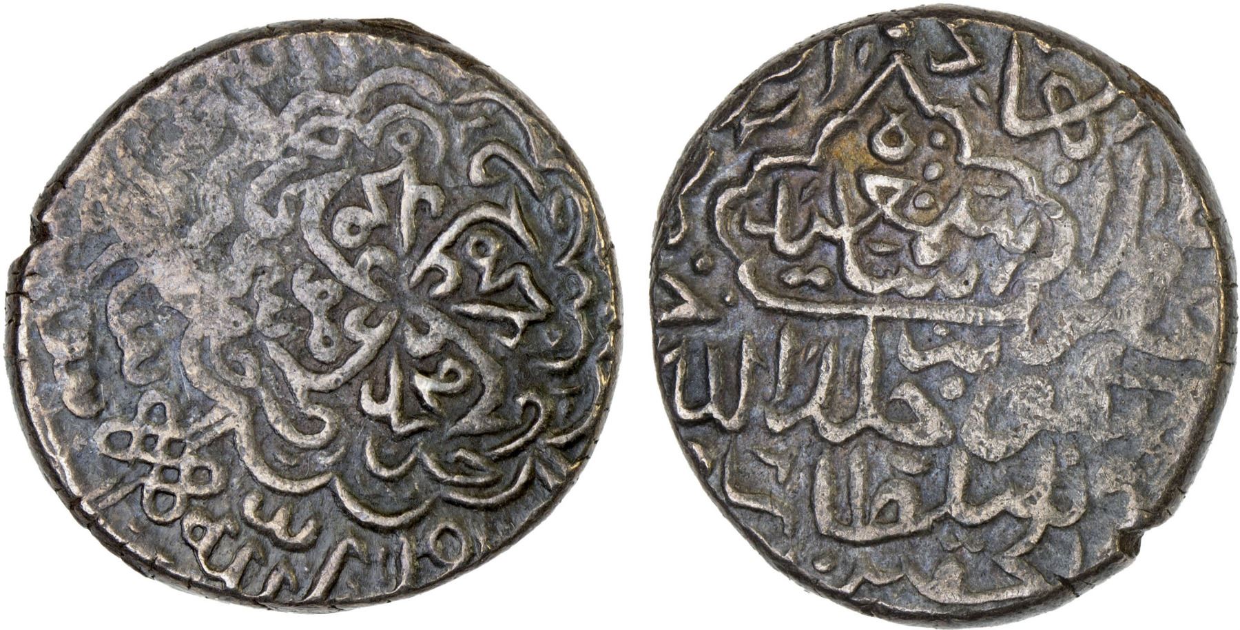 SAFAVID: Isma'il I, 1501-1524, AR ½ shahi (4.72g), al-Hisn, ND, A-2577, East Anatolian style, some weakness, full mint below the obverse, VF.