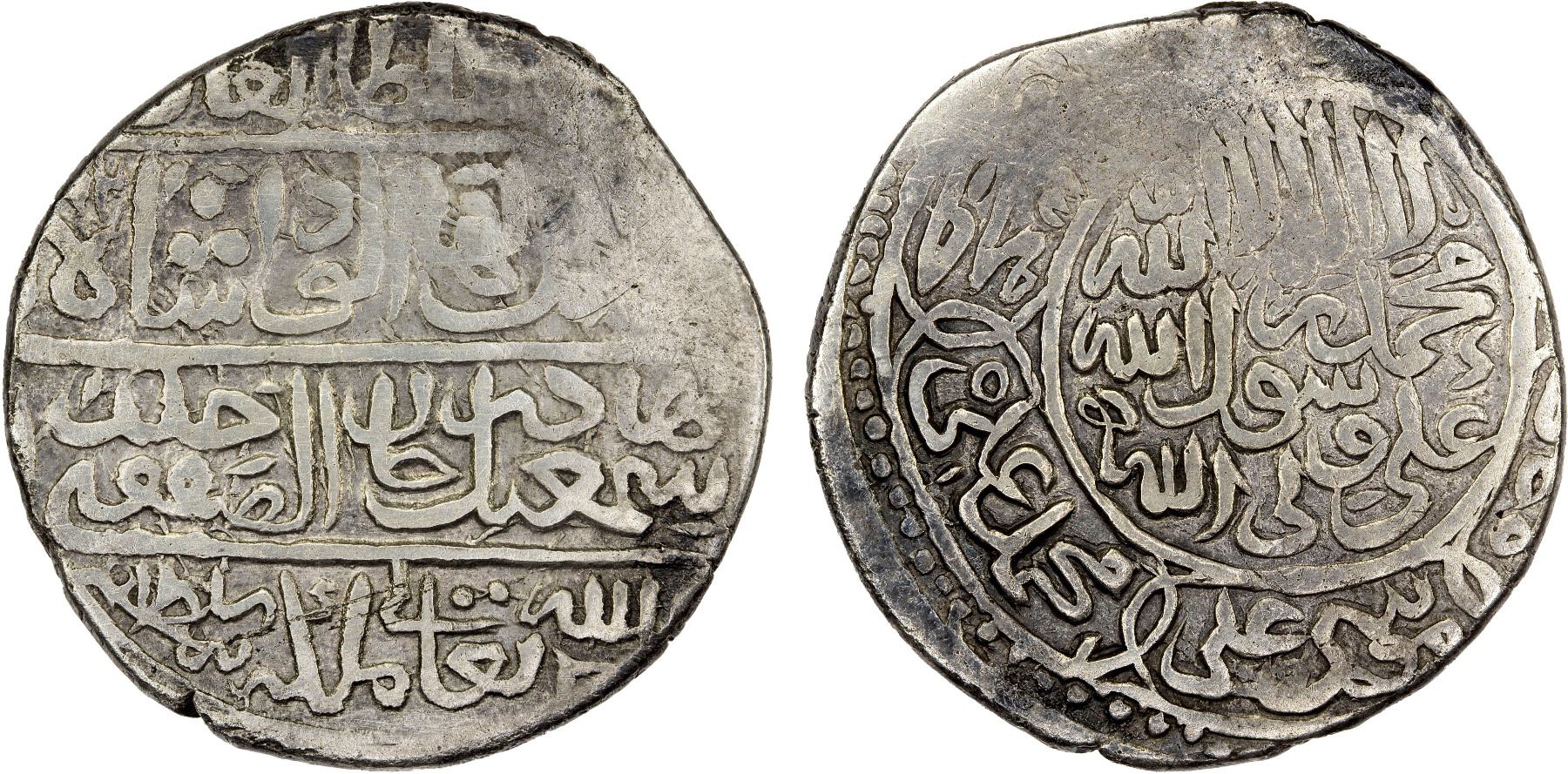 SAFAVID: Isma'il I, 1501-1524, AR shahi (8.96g), NM, AH920, A-2576, interesting type, as the last two honorific titles of Isma'il, al-hâdi al-wali are spelled without several letters, as just al-hâd al-w, presumably die-cutter's failure, VF, R.