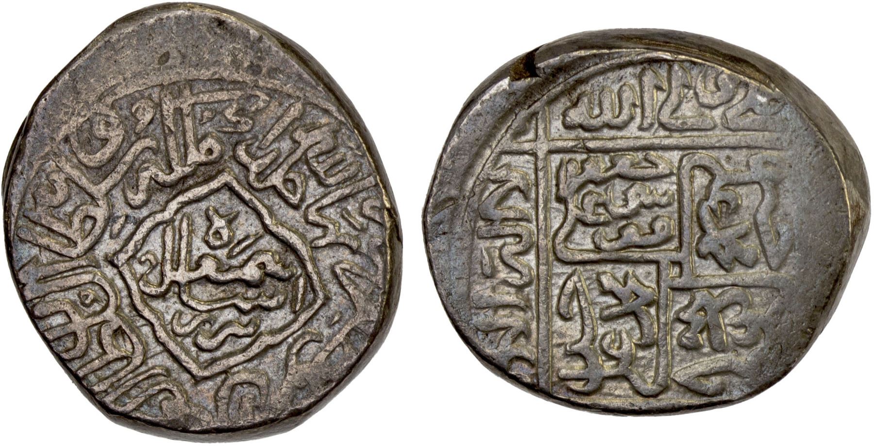 SAFAVID: Isma'il I, 1501-1524, AR shahi (9.34g), Tabriz, ND, A-2576, "windmill" arrangement of the names of the 12 Imams on the reverse, VF.