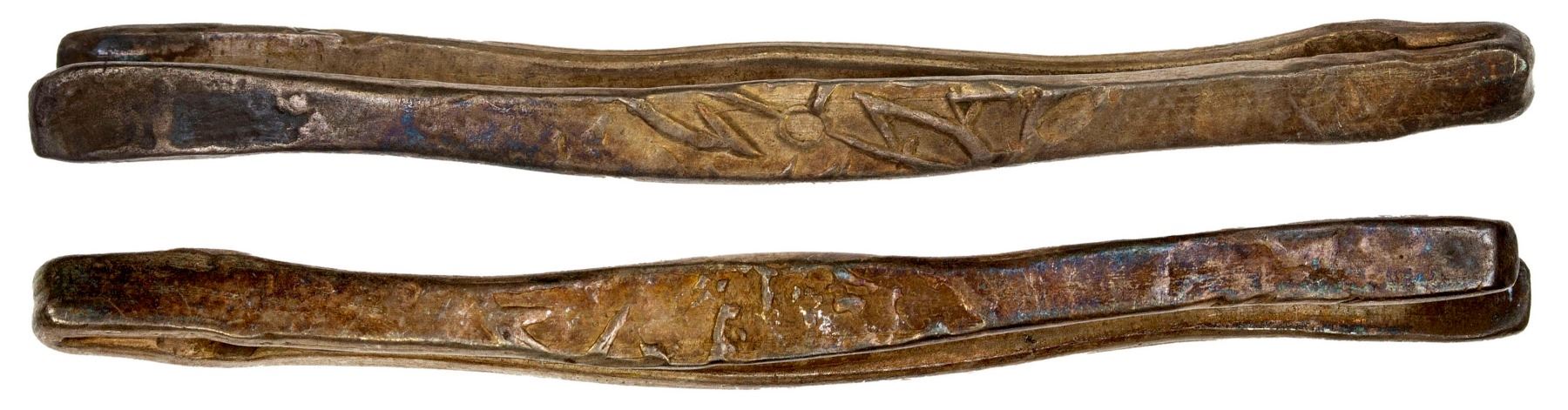 SAFAVID: Tahmasp I, 1524-1576, AR larin (4.72g), ND, A-2611, obverse legend virtually illegible, reverse has some of the names of the Shi'ite Imams in the millsail symbol, VF.