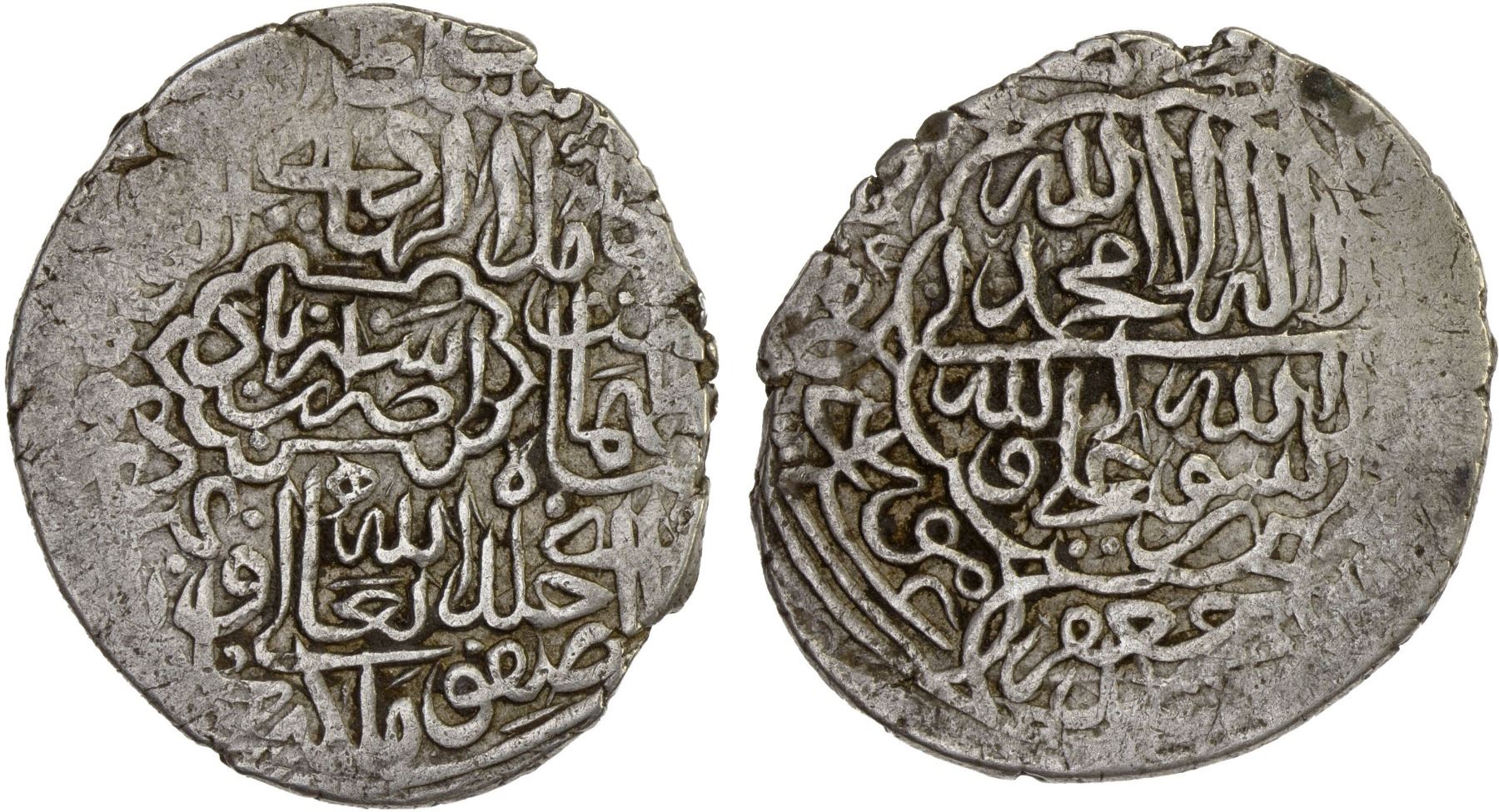SAFAVID: Tahmasp I, 1524-1576, AR shahi (5.48g), Astarabad, ND, A-2606, second eastern silver standard, used AH934-954; elongated cartouche in obverse center, VF.