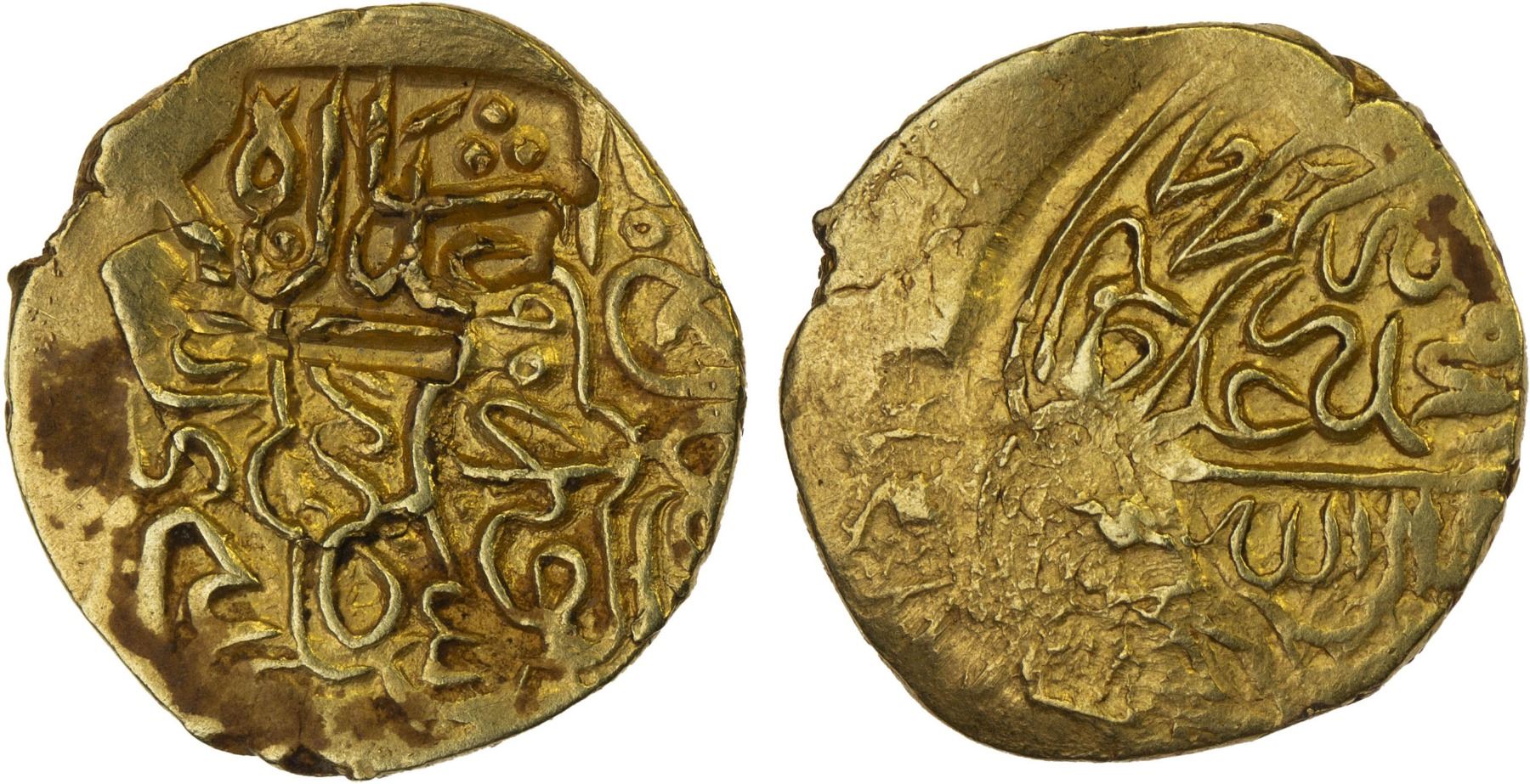 SAFAVID: Tahmasp I, 1524-1576, AV ½ mithqal (2.29g), NM, ND, A-2611H, countermarked 'adl-i shah on type A-N2593, half mithqal of the 4th standard of gold coinage of Tahmasp I, Sabzawar mint, date AH95x, VF-XF, RRR.