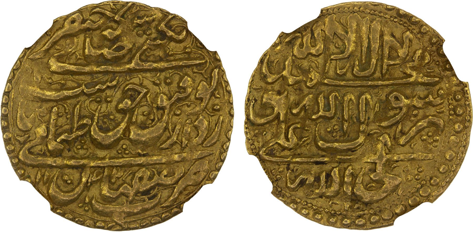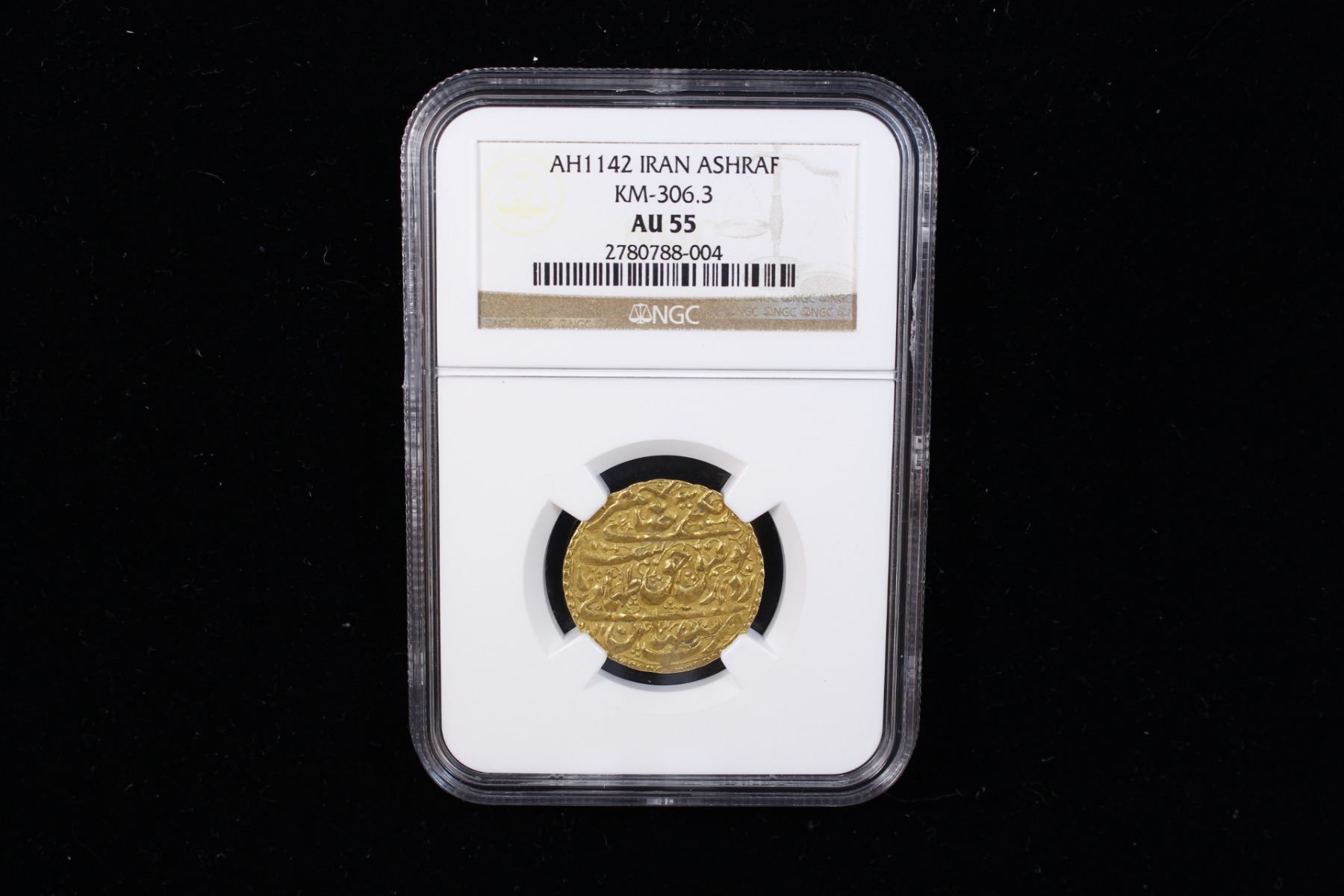 SAFAVID: Tahmasp II, 1722-1732, AV ashrafi, Isfahan, AH1142, A-2688, KM-306.3, fully legible mint & date, NGC graded AU55, R.