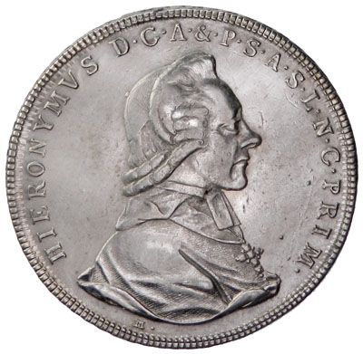 SALZBURG: Hieronymus, 1772-1803, AR thaler, 1785, KM-435, lightly cleaned, EF.