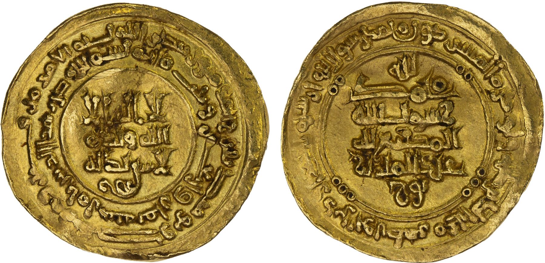 SAMANID: 'Abd al-Malik I, 954-961, AV dinar (3.18g), Amul, AH348, A-1460, scarce mint in Mazandaran province, without the word khayr ("good") above the obverse field, very lightly creased, VF-XF.