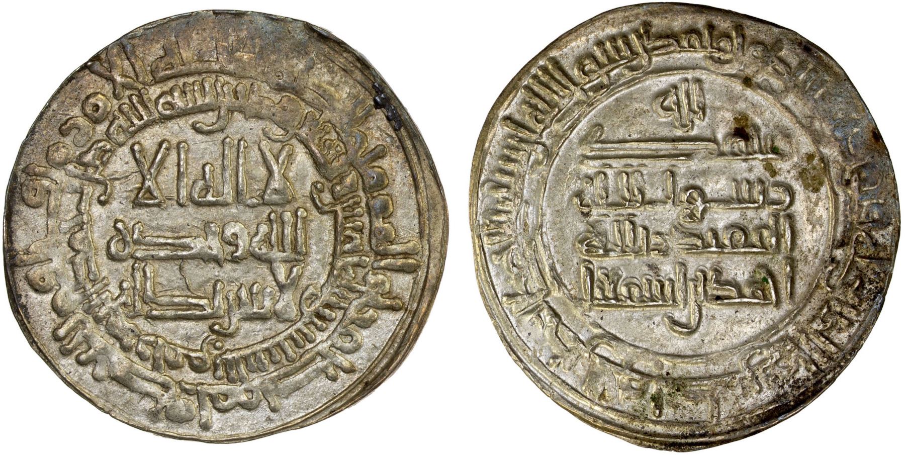 SAMANID: Ahmad II, 907-914, AR dirham, al-Shash, AH295, A-1446, citing the Abbasid caliph al-Muqtadir, lovely bold strike, XF.