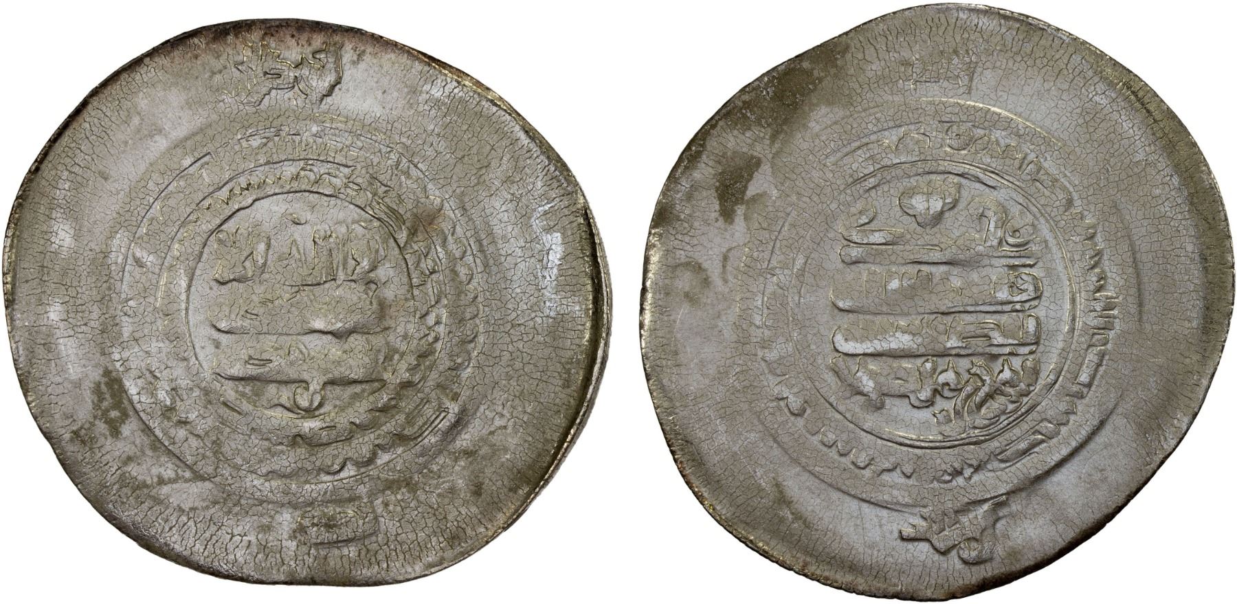 SAMANID: Nuh III, 976-997, AR multiple dirham (11.28g), al-Ma'din, ND, Mitch-M20, A-1469.1, citing al-Harith b. Harb & al-Ta'i', XF.