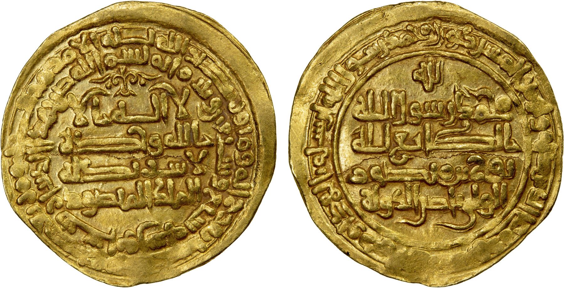 SAMANID: Nuh III, 976-997, AV dinar (3.73g), Nishapur, AH377, A-1468, citing the governor al-wali nasir al-dawla below the reverse, VF-EF.