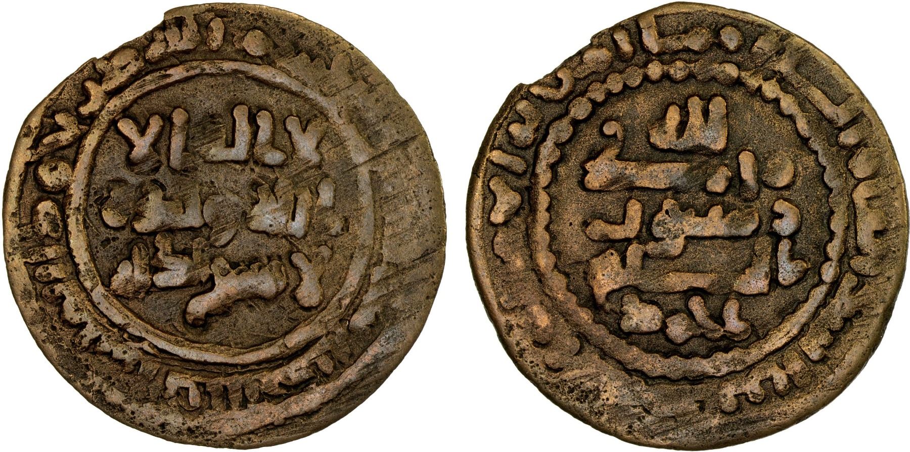 SAMANID OF AKHSIKATH: Ahmad b. Asad, 883-892, AE fals (2.58g), Akhsikath, AH[2]7x, A-G1477, ruler cited only as Ahmad in the obverse field, but as Ahmad bin Asad in the reverse margin; slight weakness, VF, R.