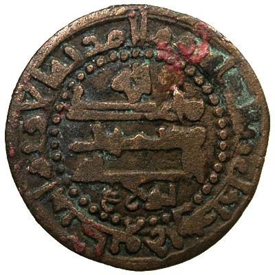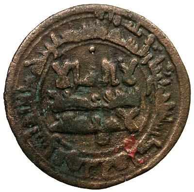 SAMANID of Akhsikath: Malik b. Shakartegin, 924-955, AE fals (2.45g), Ferghana Malik, AH331, A-E1477, with the letter 'ayn after the name Nuh in reverse field, very nice strike, evenly worn, Fine to Very Fine, R.
