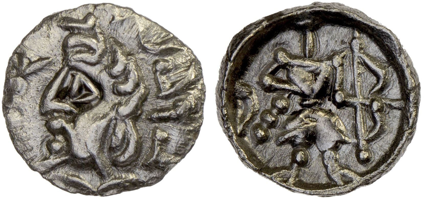 SAMARKAND: Antiochus Imitation, ca. 2nd-4th century, AR obol (0.35g), cf. Zeno-305515, royal bust left with curly hair, with part of an undeciphered legend upper right // archer standing right, holding bow, excellent strike, choice XF, RR.