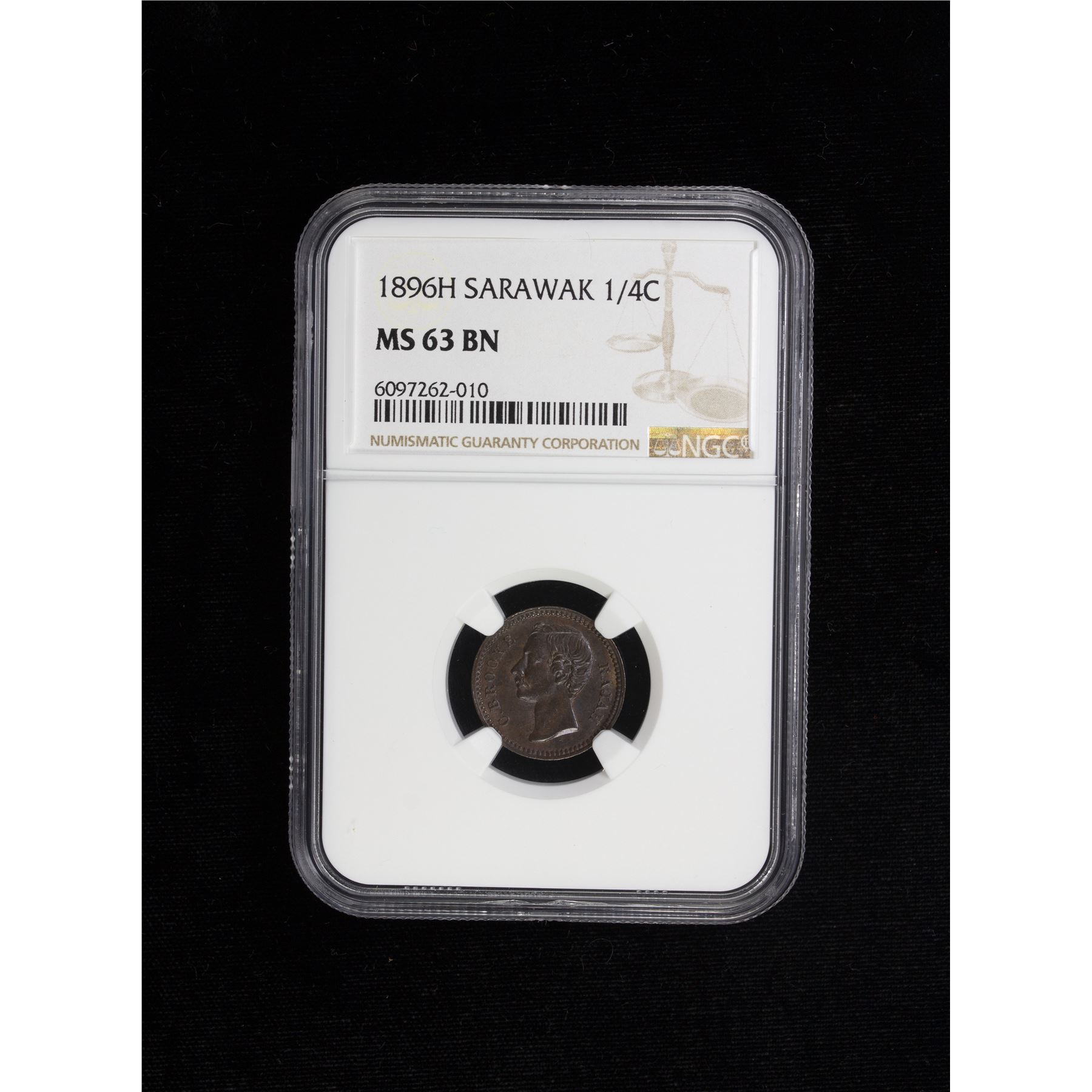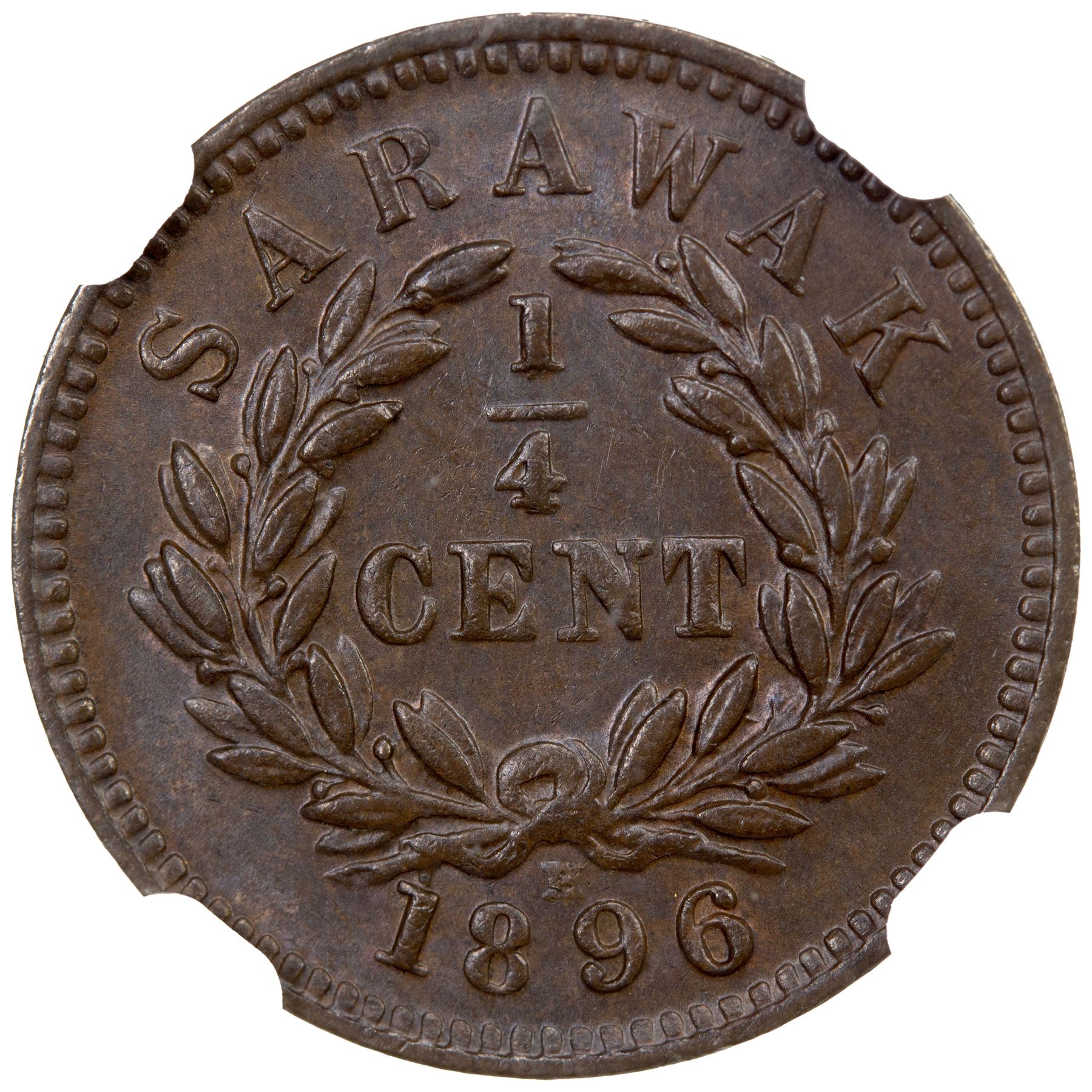 SARAWAK: Charles J. Brooke, 1868-1917, AE ¼ cent, 1896-H, KM-4, a lovely mint state example with chocolate brown luster! NGC graded MS63 BN.