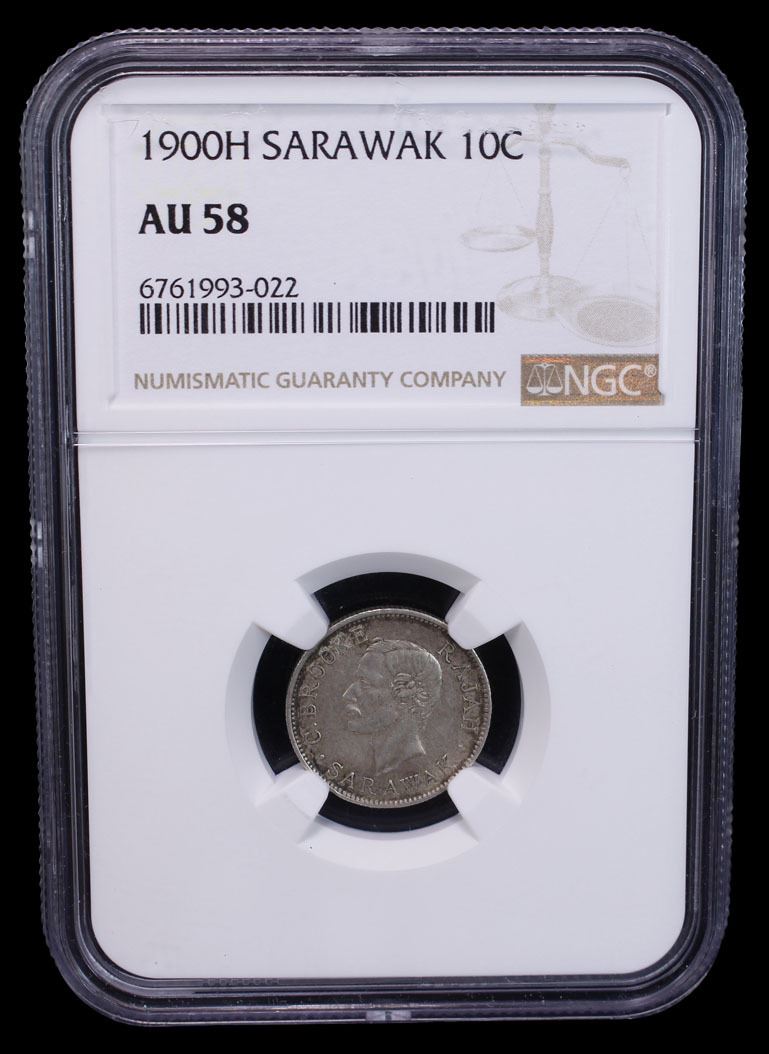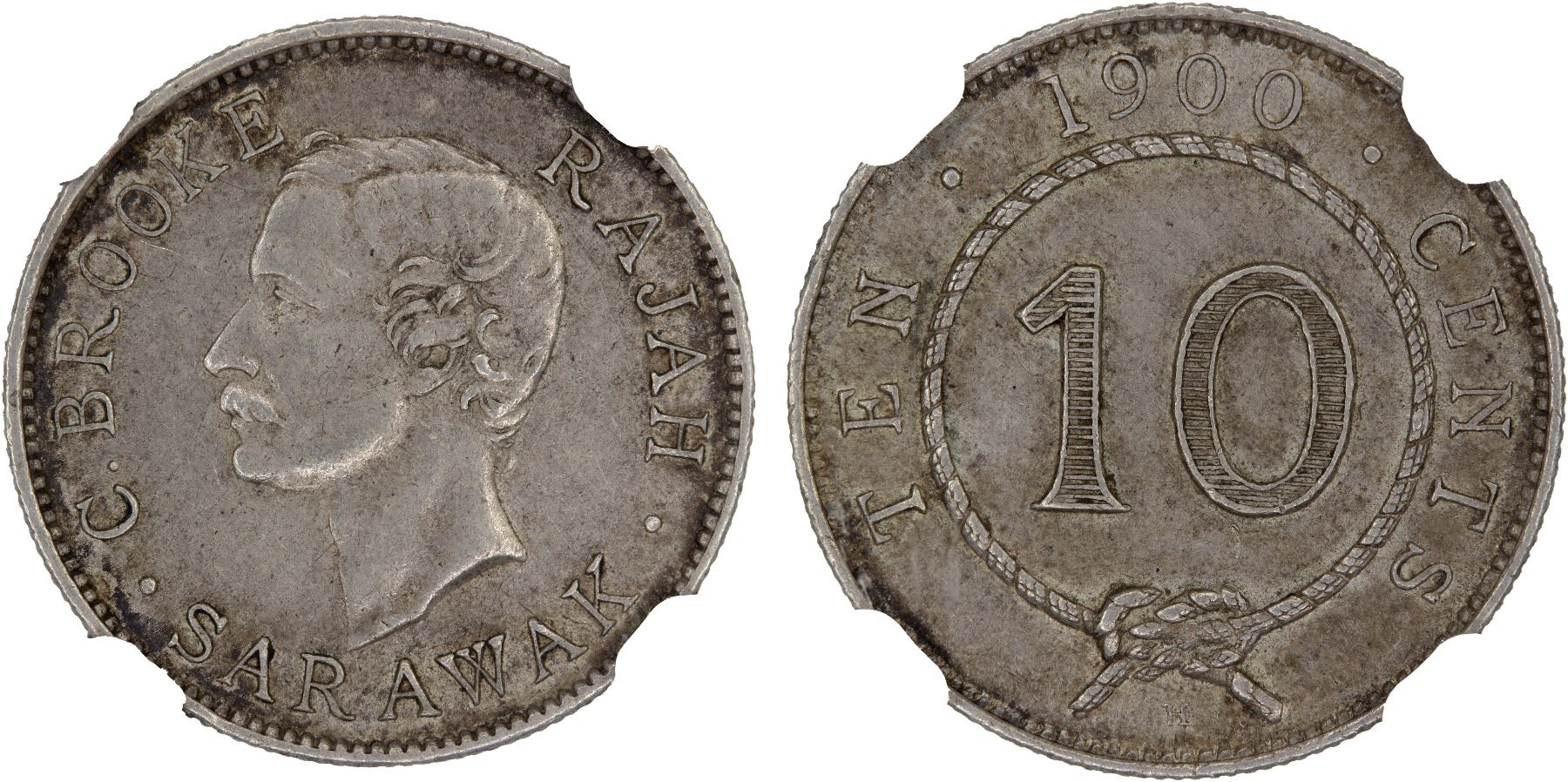 SARAWAK: Charles J. Brooke, rajah, 1868-1917, AR 10 cents, 1900-H, NGC AU58