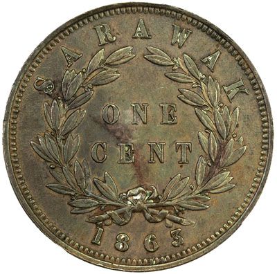 SARAWAK: James Brooke, 1841-1868, cent, 1863, KM-3, cleaned, also tiny lamination mark above Brooke's head (not noted on the slab), PCGS graded About Unc details.