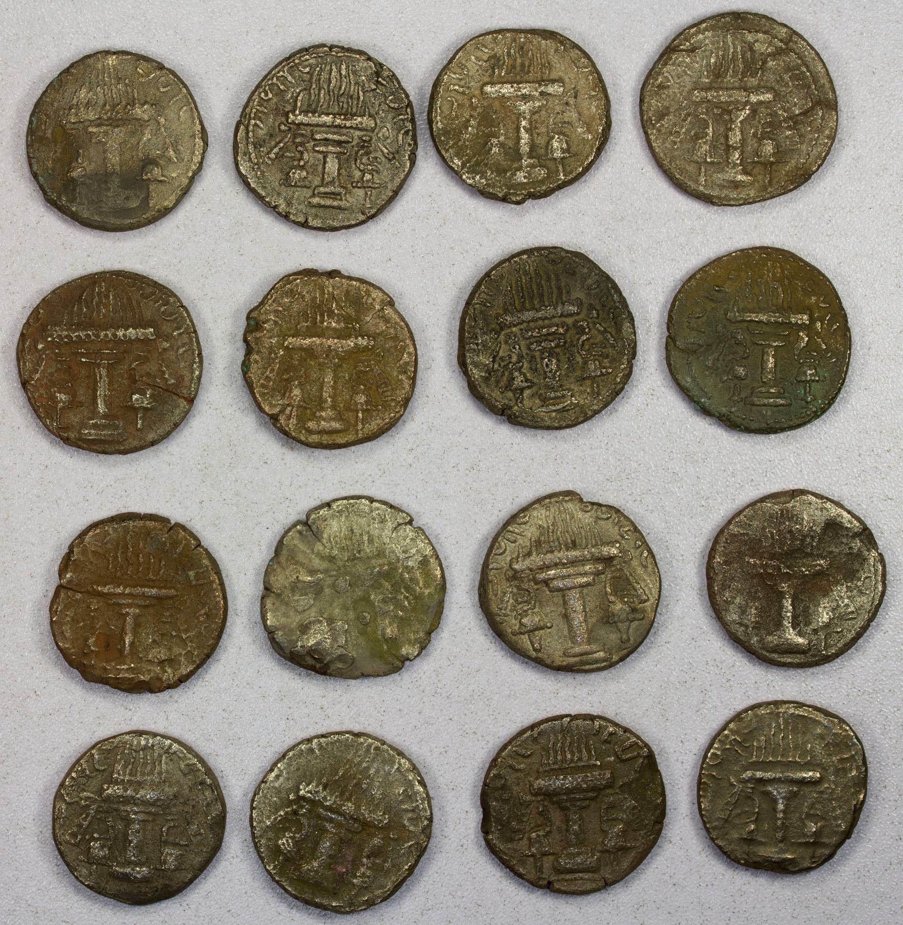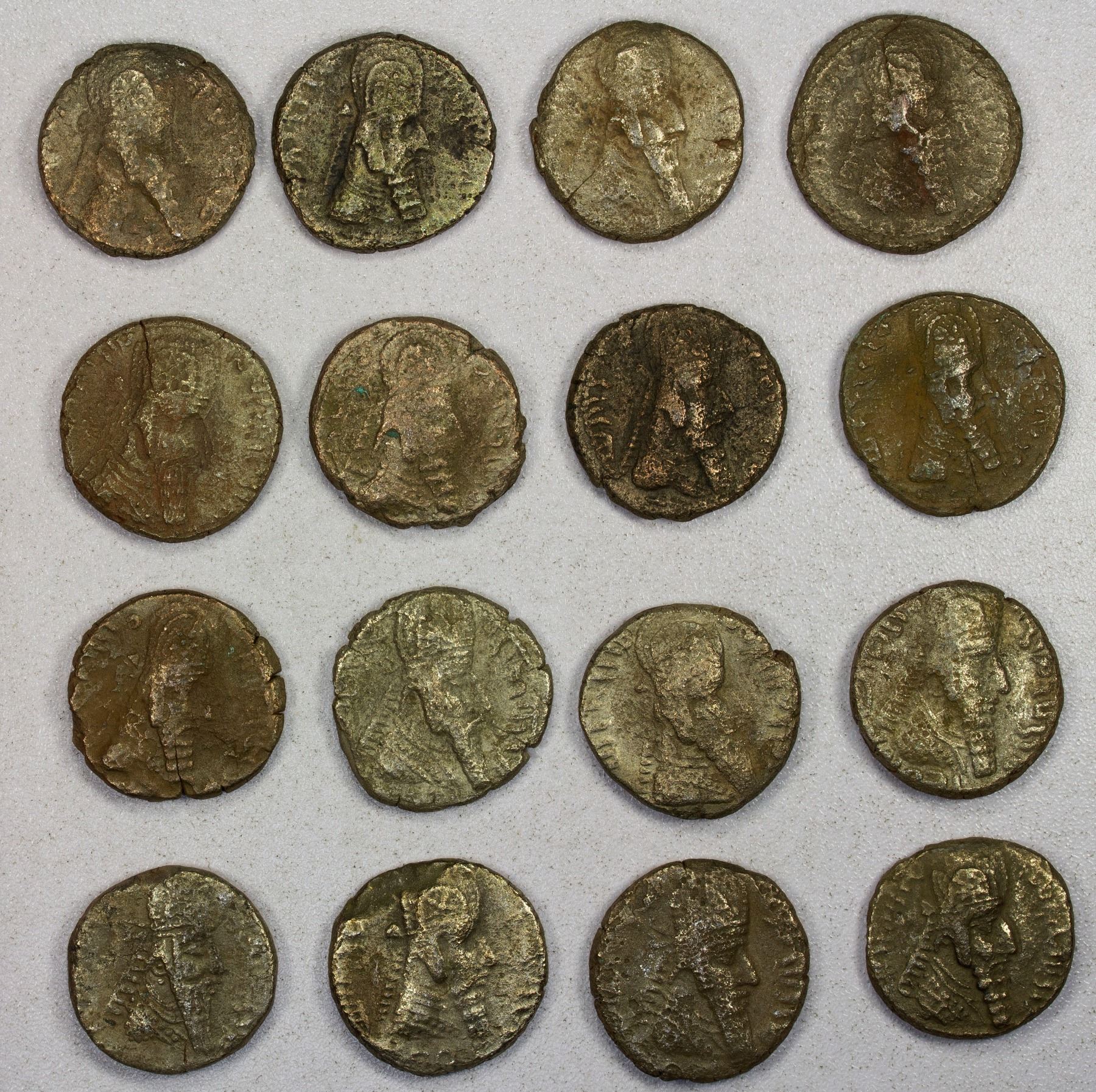 SASANIAN KINGDOM: Ardashir I, 224-241, LOT of 16 billon "tetradrachms", type Göbl-7 (bust right / fire-altar), mostly nearly VF condition but all with significent corrosion or porosity or both; retail value $500, lot of 16 pieces.