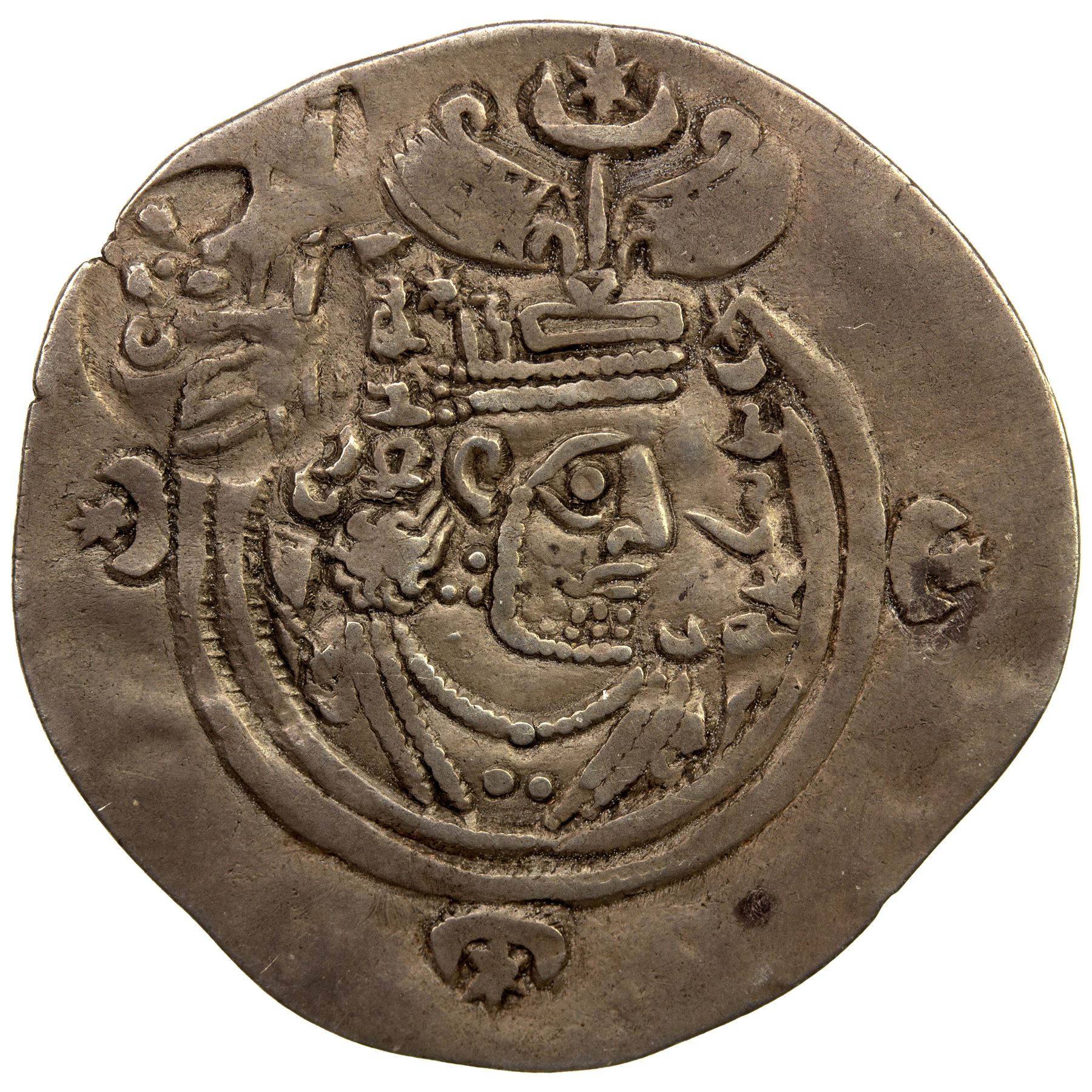 SASANIAN KINGDOM: Hormizd V, 631-632, AR drachm (3.92g), MY (Maysan), year 2, G-230, countermarked senmurg (mythical bird) in ObQ4 (Göbl #11), VF.