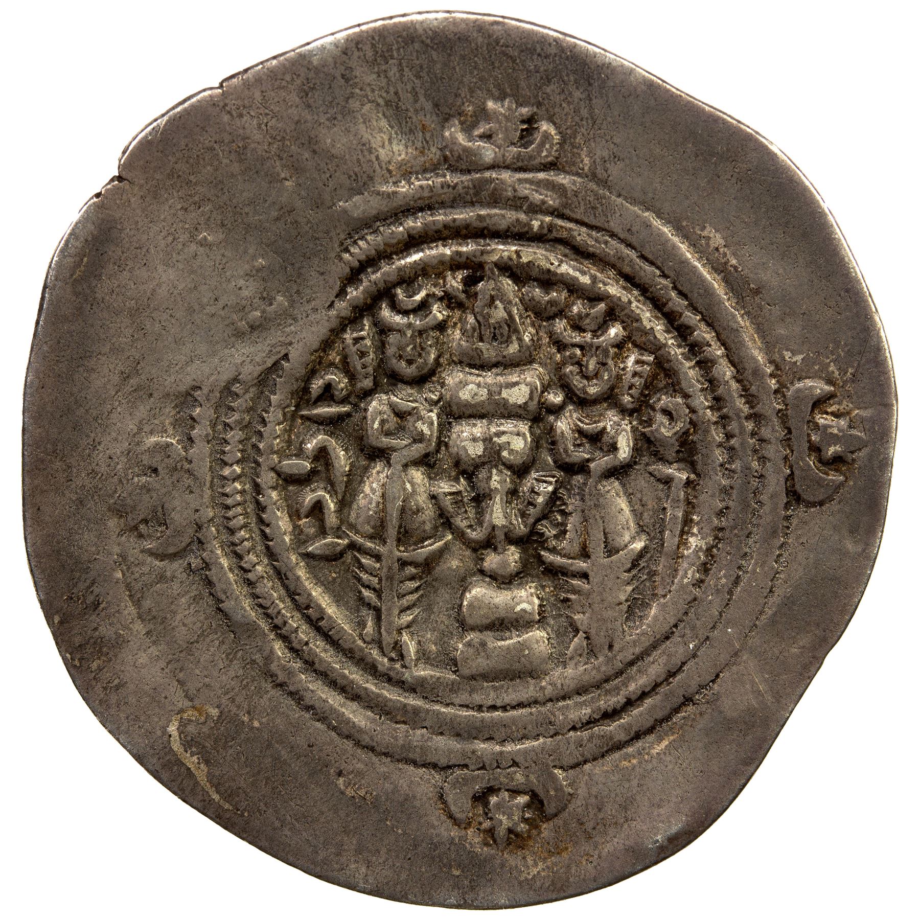 SASANIAN KINGDOM: Hormizd V, 631-632, AR drachm (3.92g), MY (Maysan), year 2. VF
