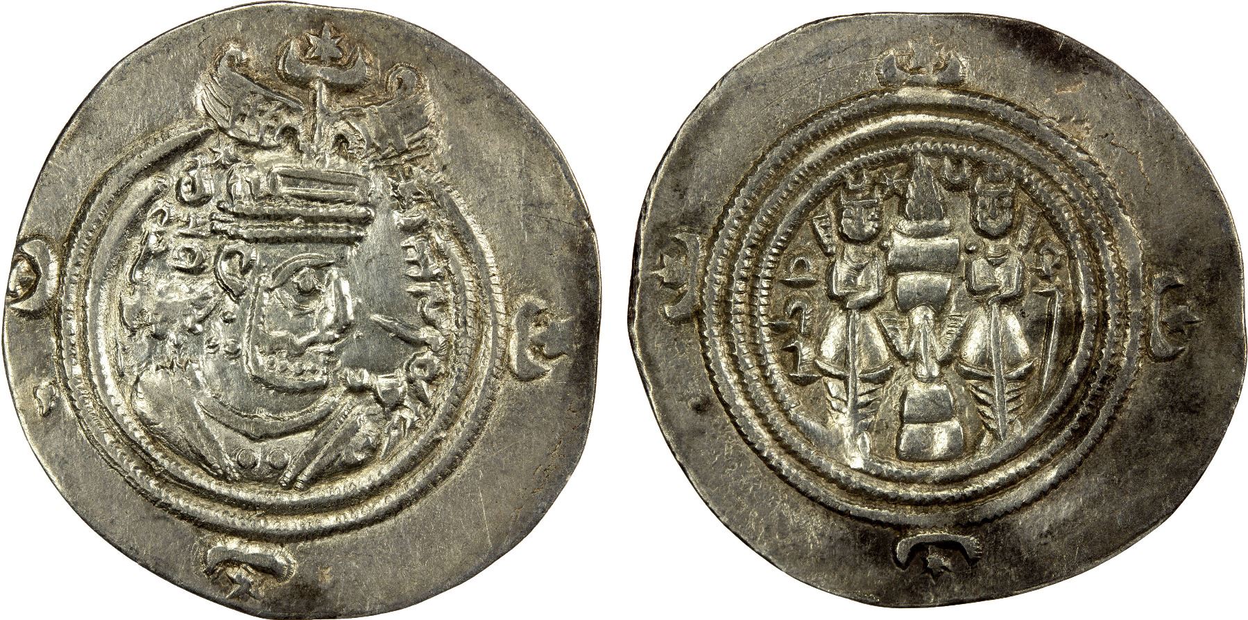 SASANIAN KINGDOM: Hormizd VI, 631-632, AR drachm (3.61g), MY (Mishan), year 2, choice VF