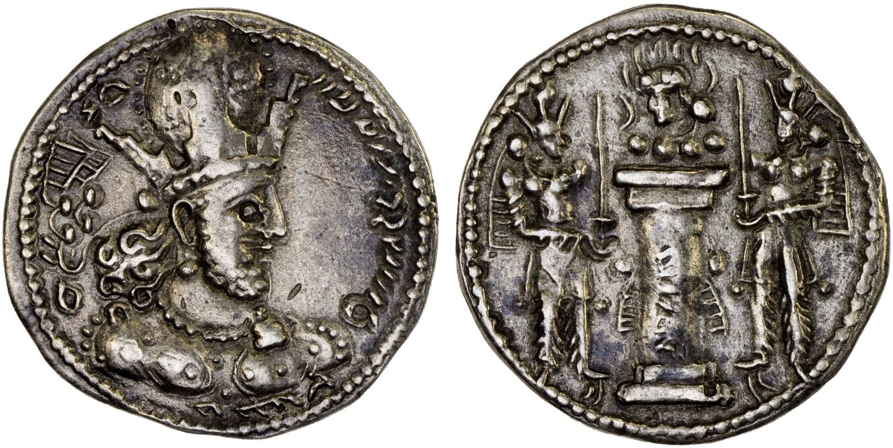 SASANIAN KINGDOM: Shahpur II, 309-379, AR drachm (3.29g), G-106, rare variety, with the king's head before the flames facing left instead of the common facing right; bold strike, VF-XF, RR.