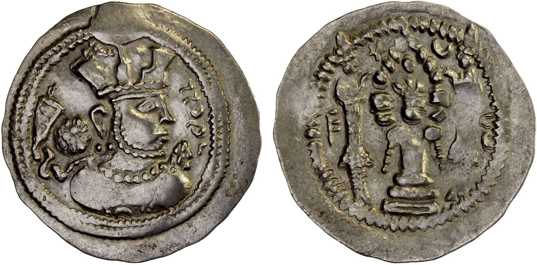 SASANIAN KINGDOM: Valkash, 484-488, AR drachm (3.52g), blundered mint, ND, bold VF-XF