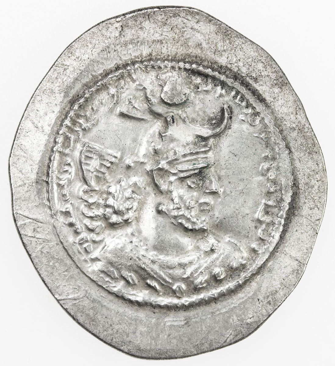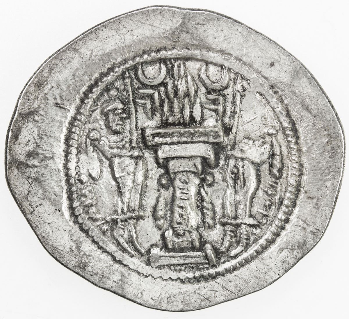 SASANIAN KINGDOM: Yazdigerd I, 399-420, AR drachm (4.52g), BBA (the Camp mint), G-147, 2nd series, crown with korymbos, crescent right, and 2 small ribbons left, broad flan, choice EF.