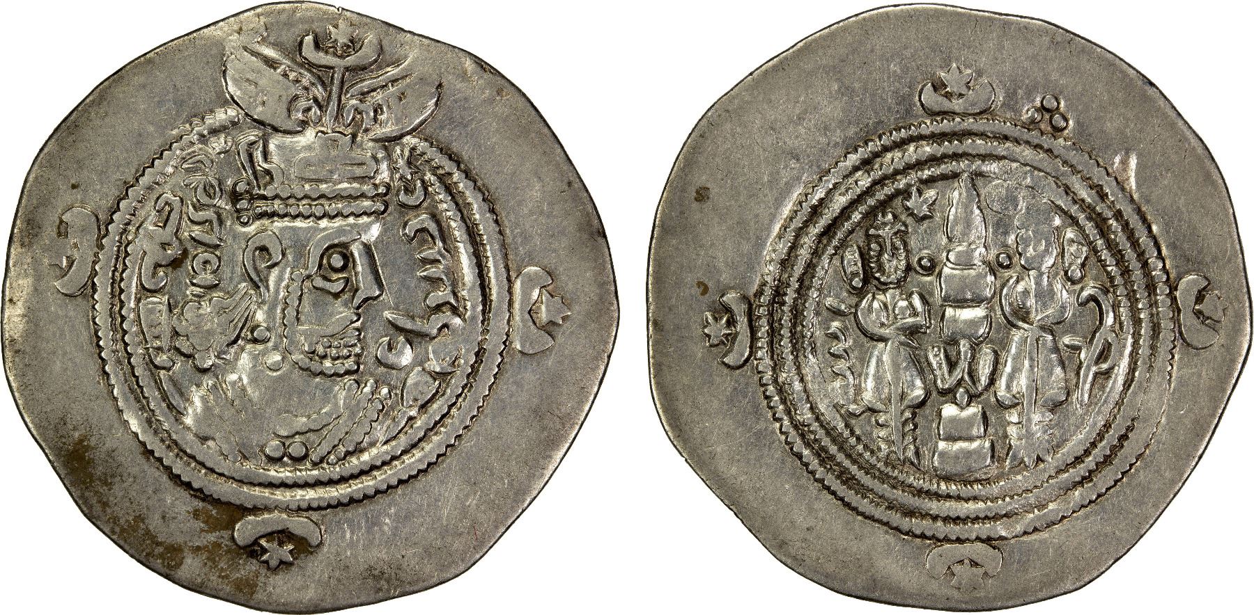 SASANIAN KINGDOM: Yazdigerd III, 632-651, AR drachm (4.06g), GLM ("Warm Kirman"), year 20, G-235, triplet of pellets at 1h in the reverse margin; scarce mint, VF, R.