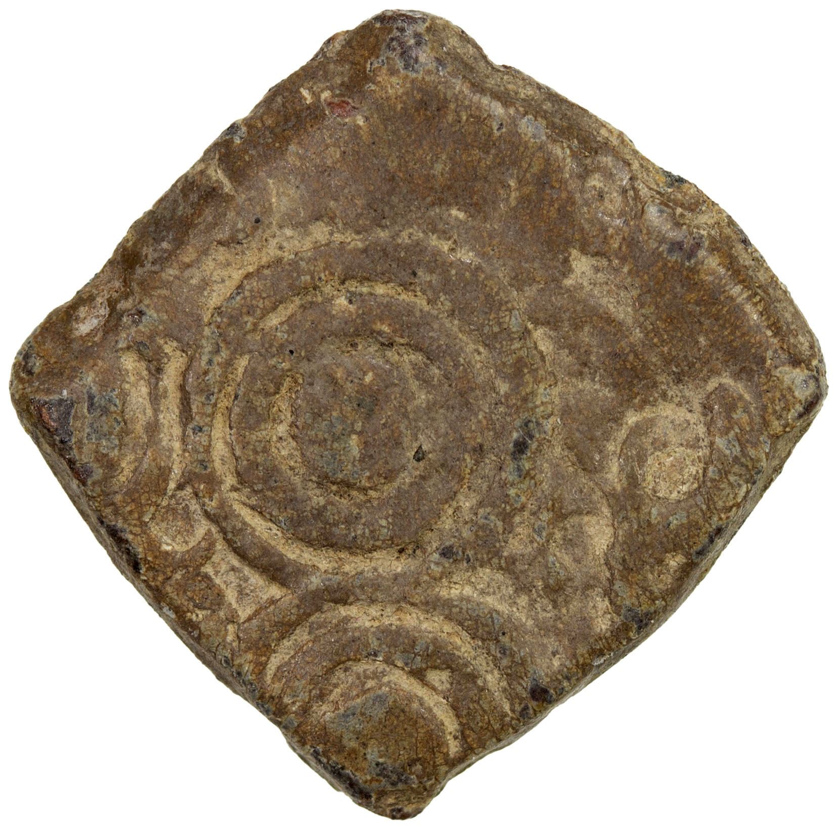 SATAVAHANA: Sri Satakarni, 1st century BC, lead square unit (1.78g), cf. Pieper-703, elephant right // Ujjain symbol with double circles, decent Fine, RR.