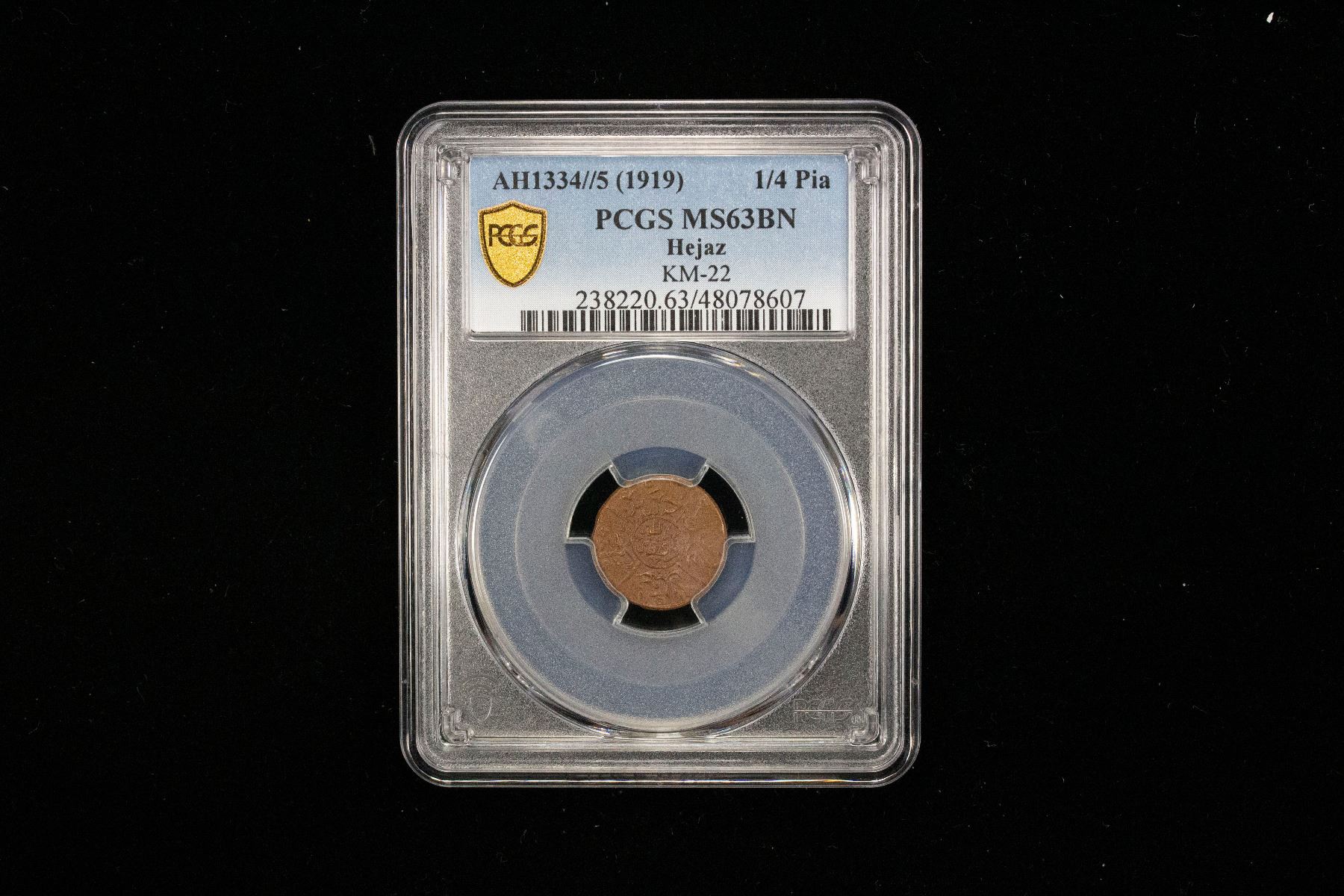 SAUDI ARABIA: HEJAZ: al-Husayn b. 'Ali, 1916-1924, AE 1/4 ghirsh (1/4 piastre), AH1334 year 5, PCGS