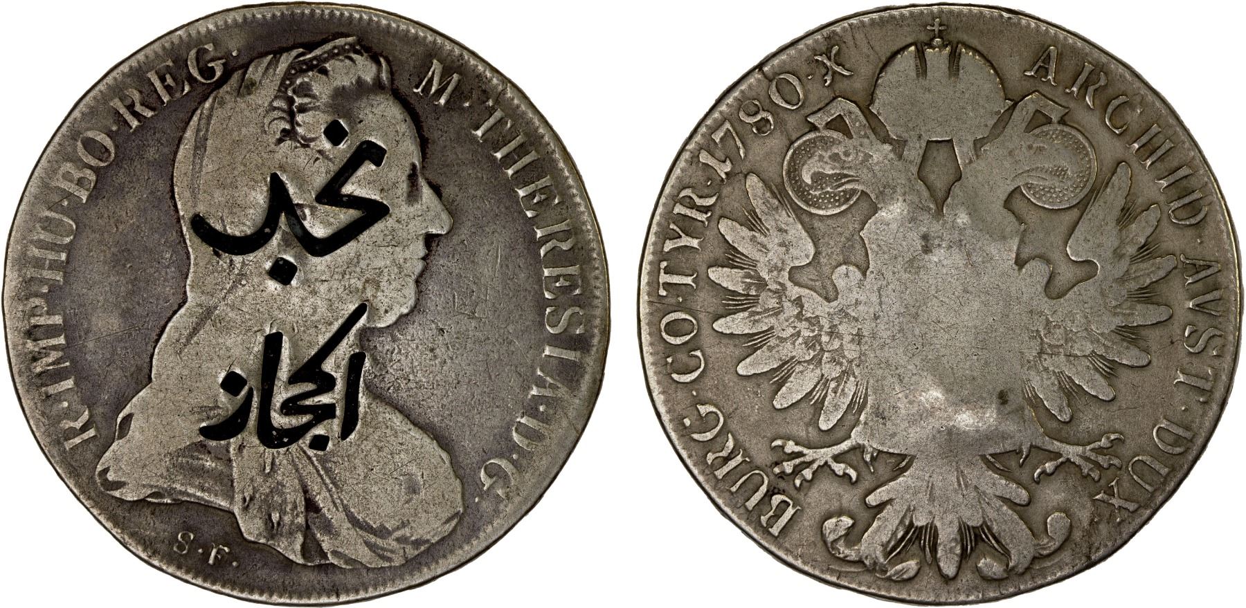 HEJAZ & NEJD: Fantasy Issues, AR thaler, KM-X20, fantasy countermarks nejd and al-hijaz on later-struck 1780-dated Maria Theresa thaler, VF.
