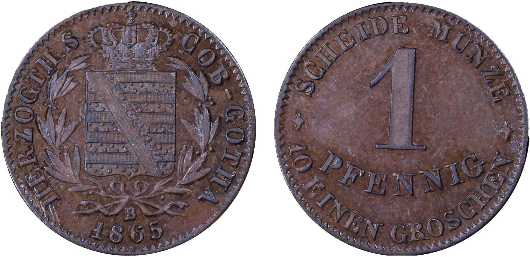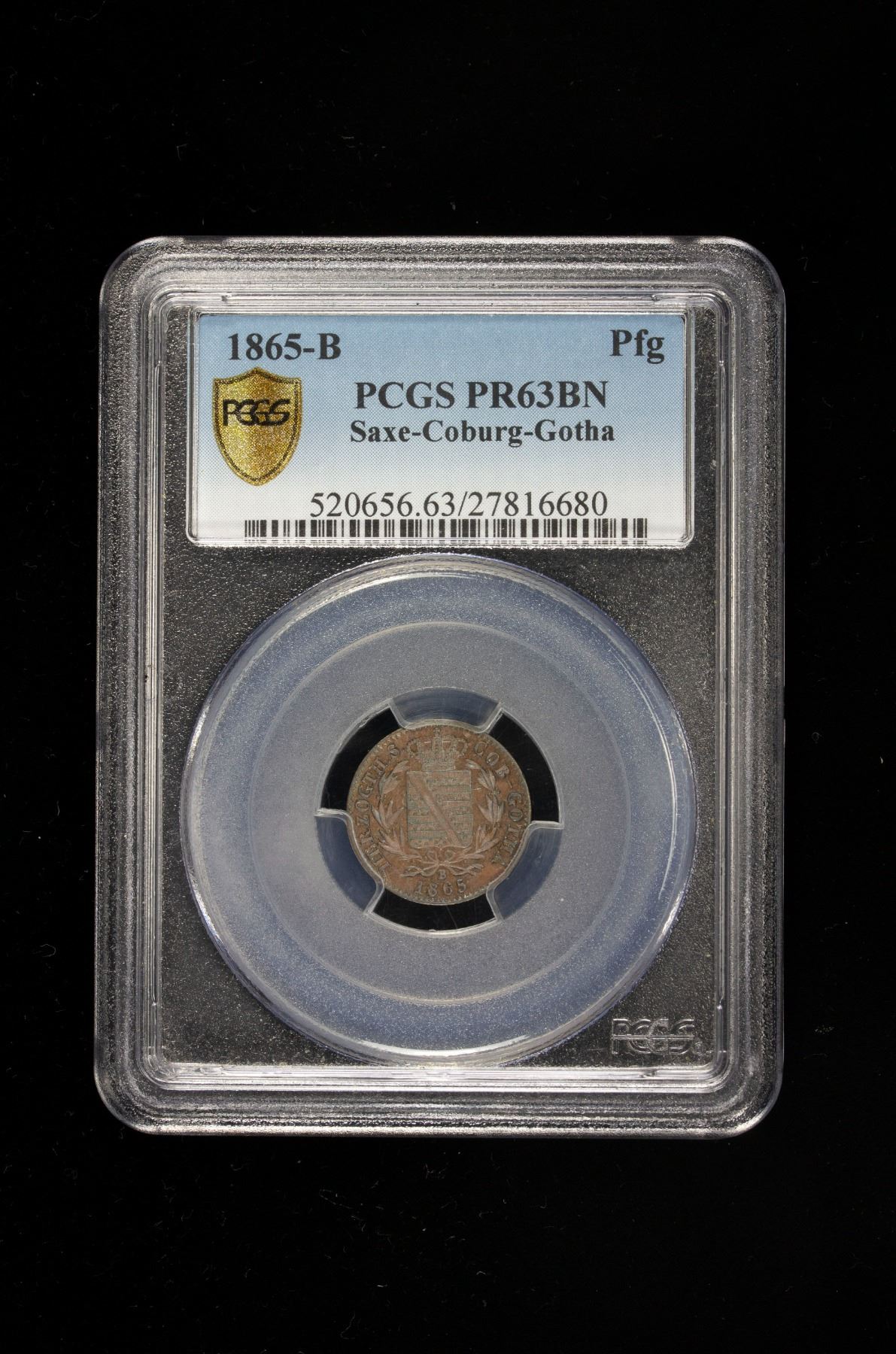 SAXE-COBURG-GOTHA: Ernst II, 1844-1893, AE pfennig, 1865, PCGS Proof 63 BN
