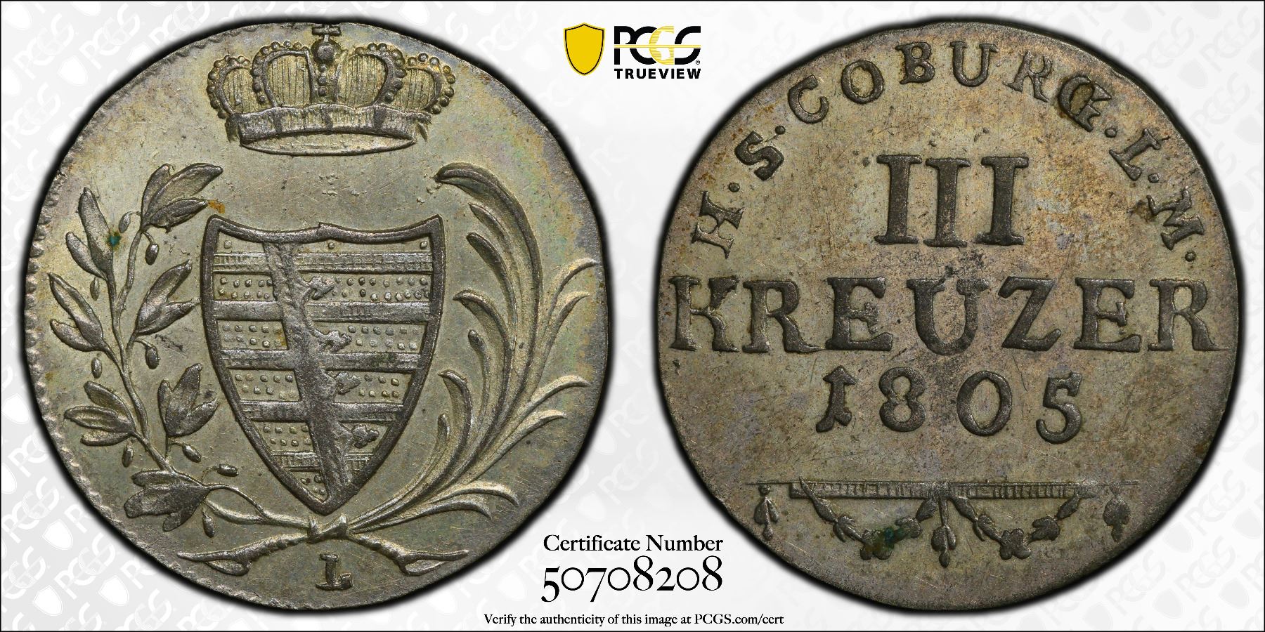 SAXE-COBURG-SAALFELD: Franz Friedrich Anton, 1800-1806, AR 3 kreuzer, 1805, PCGS MS62