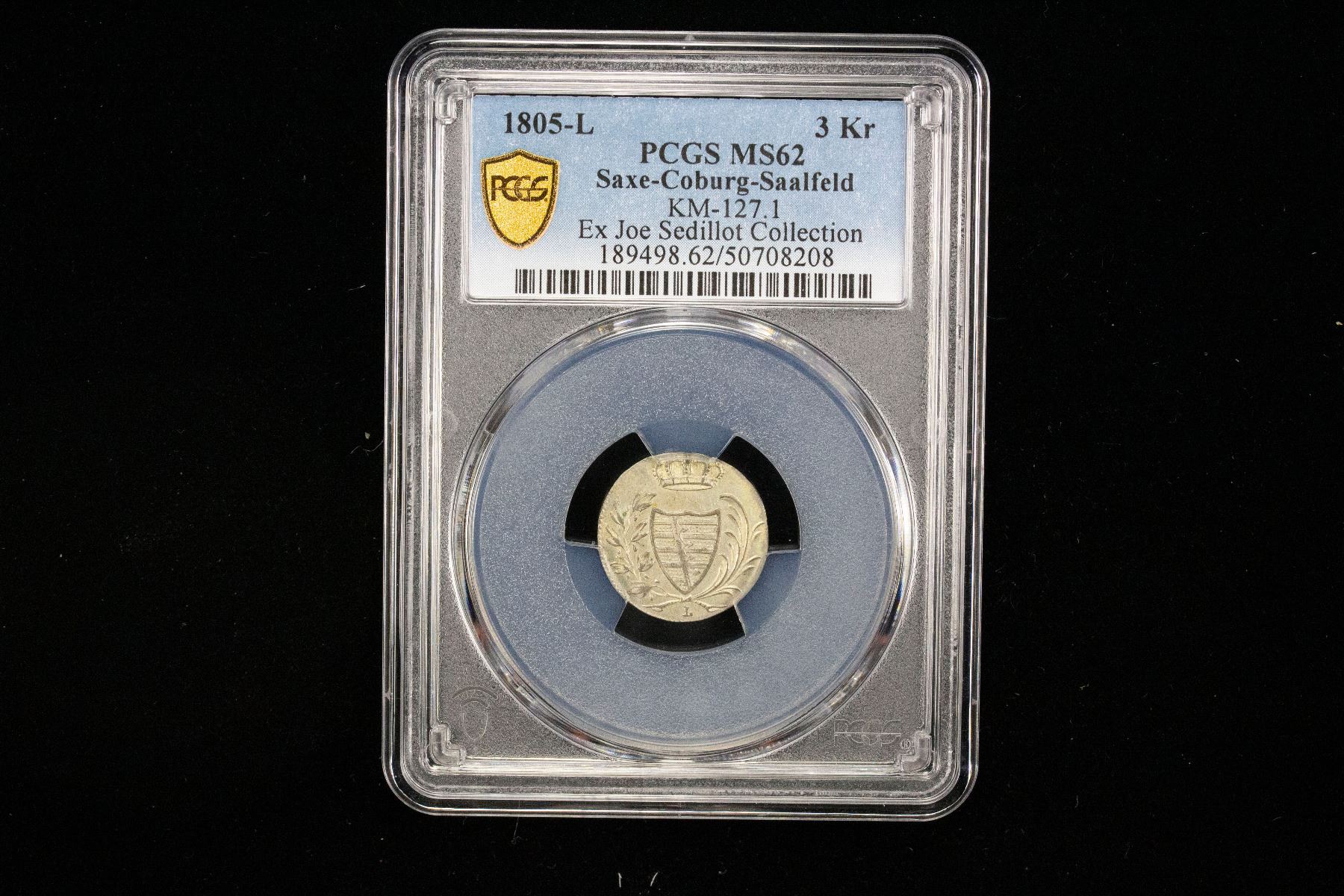 SAXE-COBURG-SAALFELD: Franz Friedrich Anton, 1800-1806, AR 3 kreuzer, 1805, KM-127.1, Cr-59, a pleasing mint state example! PCGS graded MS62, ex Joe Sedillot Collection.