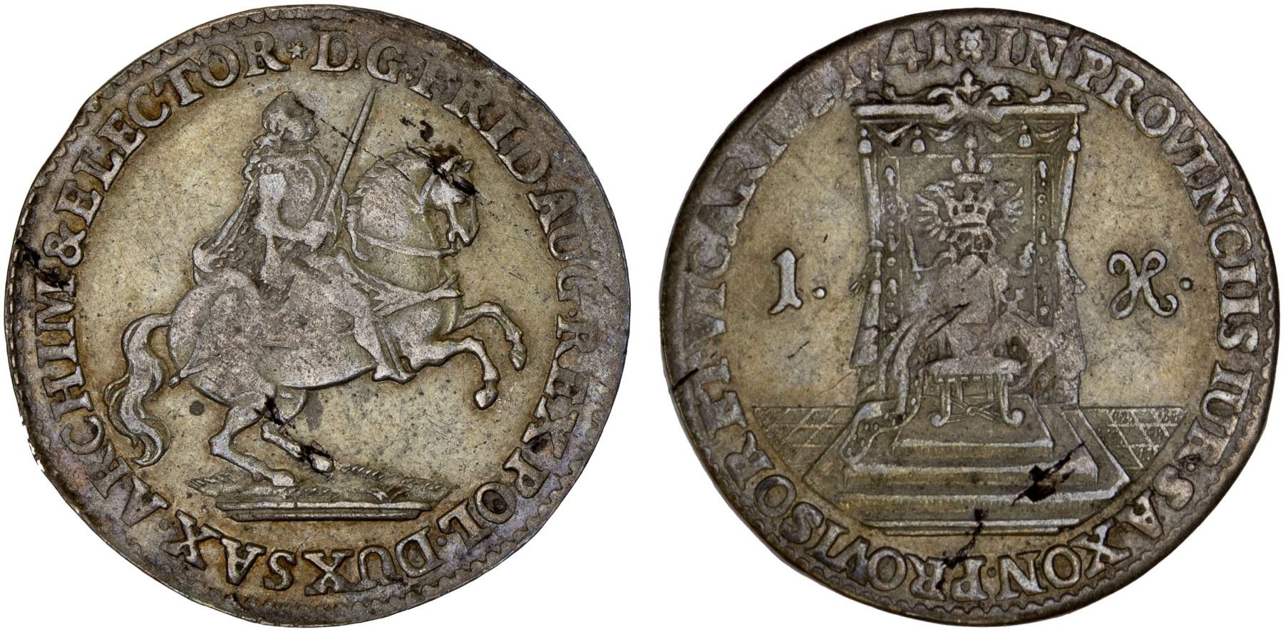 SAXONY-ALBERTINE: Friedrich August II, 1733-1763, BI groschen, 1741, KM-905, vicariat issue, VF.