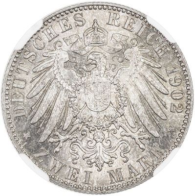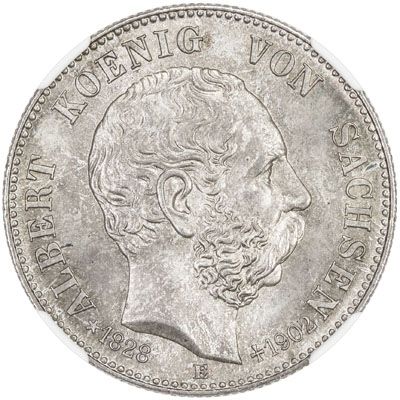 SAXONY: Albert, 1873-1902, AR 2 mark, 1902-E, KM-1255, issued in memorial to Albert upon his death, NGC graded MS65.