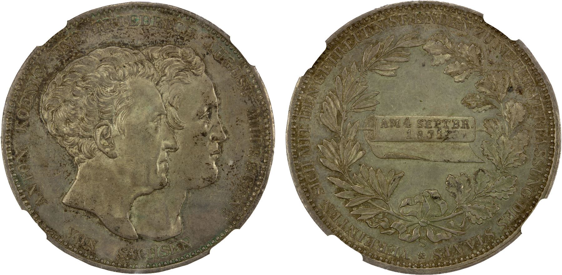 SAXONY: Anton I, 1827-1836, AR conventionsthaler, 1831, KM-1133, Dav-869, New Constitution commemorative, a pleasing mint state example, NGC graded MS62.