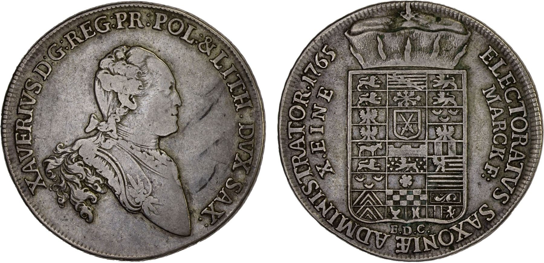 SAXONY: Francis Xavier, 1763-1768, AR thaler, 1765, F-VF