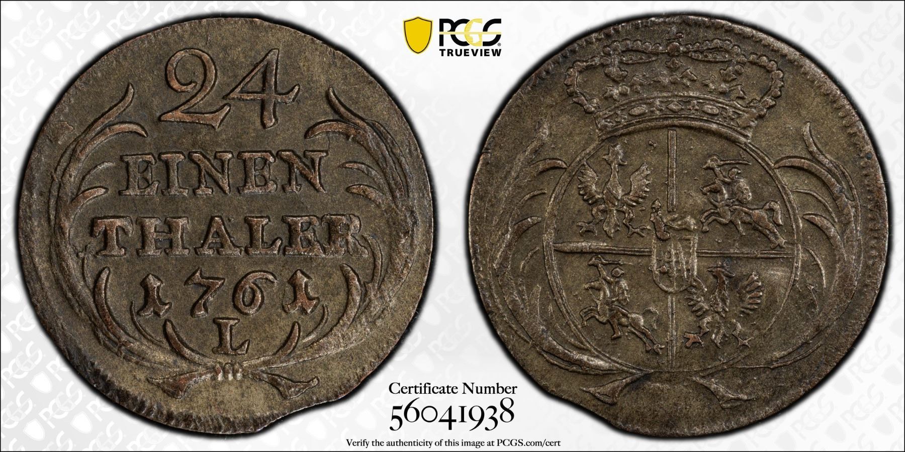 SAXONY: Friedrich August II, 1733-1763, BI 1/24 thaler, 1761, KM-929, Schön-170, Leipzig mint, PCGS graded AU58.