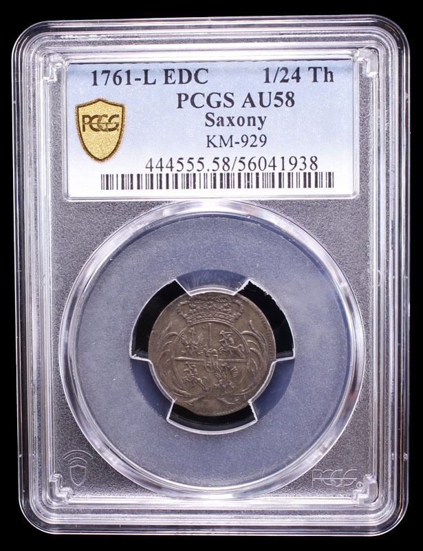 SAXONY: Friedrich August II, 1733-1763, BI 1/24 thaler, 1761, PCGS AU58