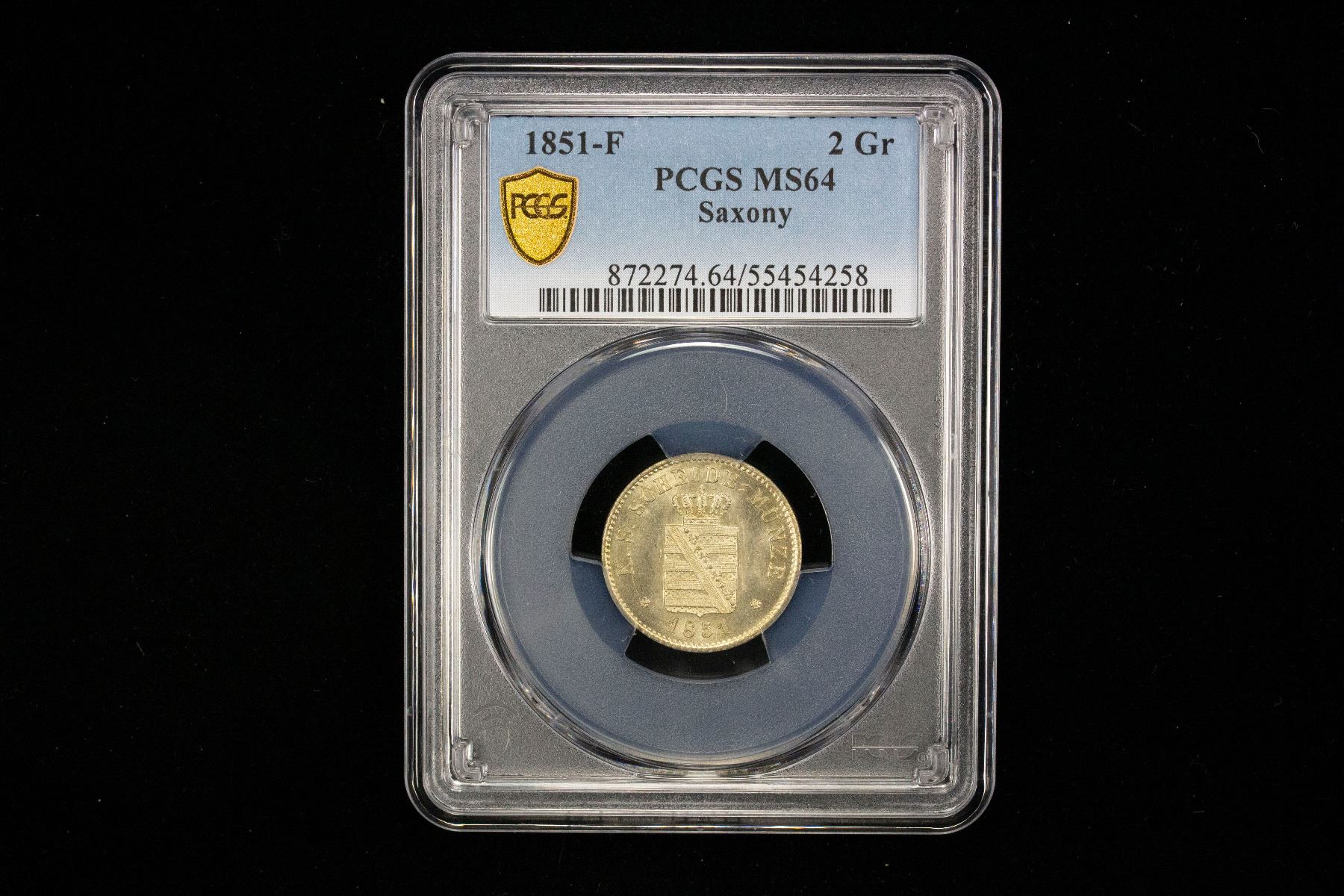 SAXONY: Friedrich August II, 1836-1854, AR 2 groschen, 1851, PCGS MS64