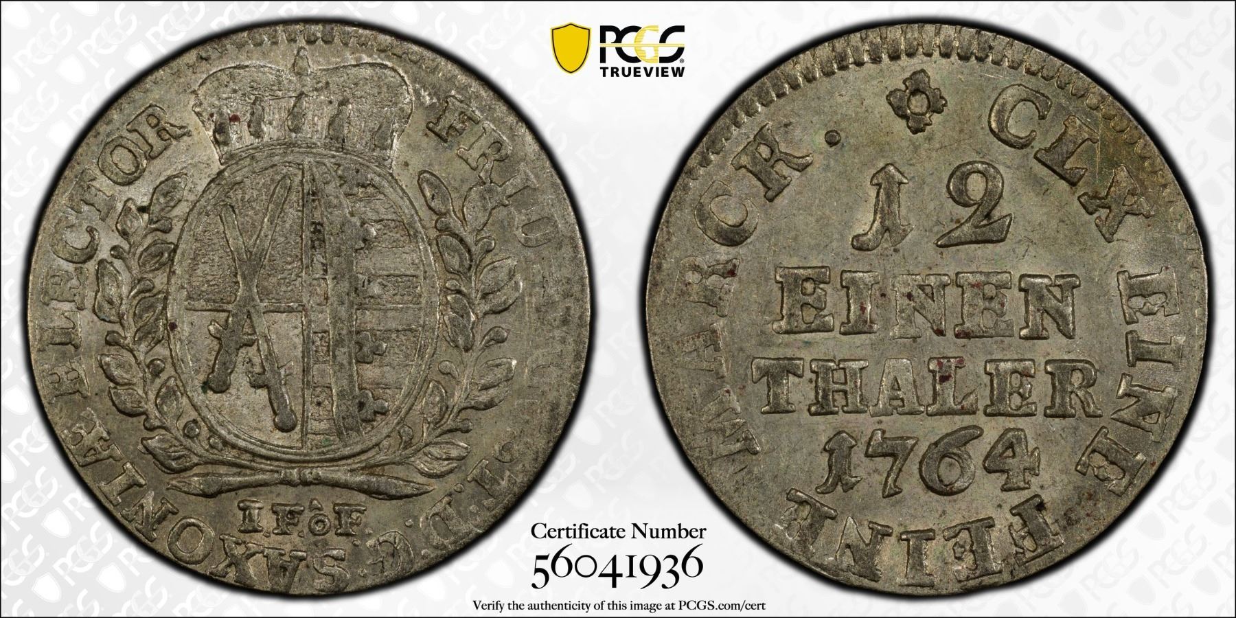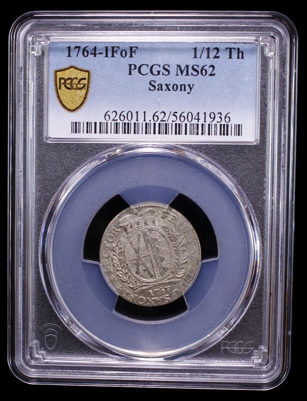 SAXONY: Friedrich August III, 1763-1806, AR 1/12 thaler, 1764, PCGS MS62